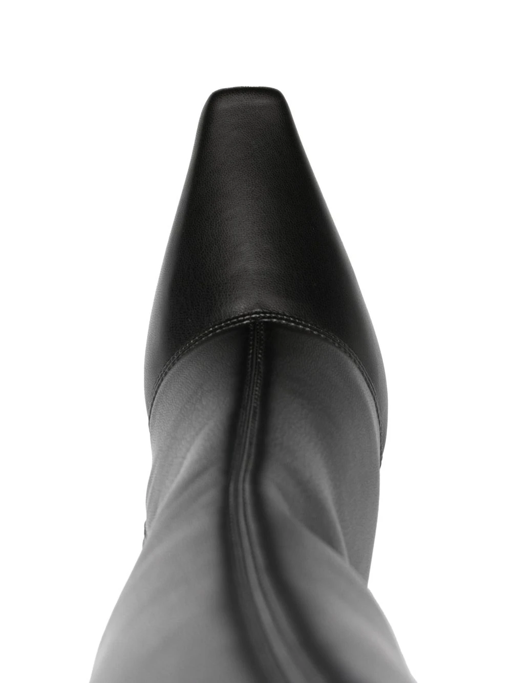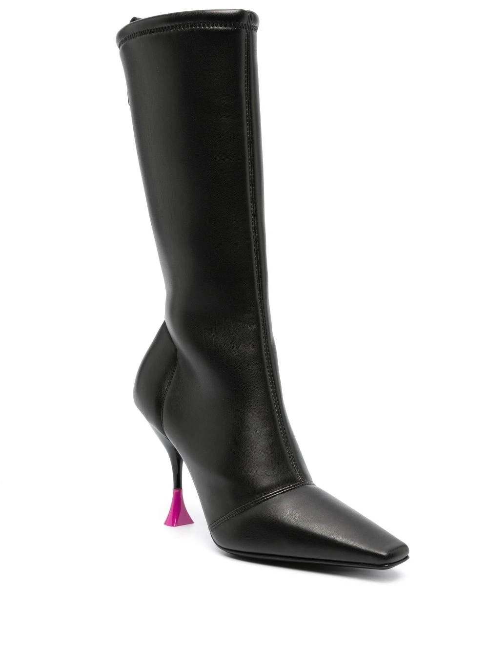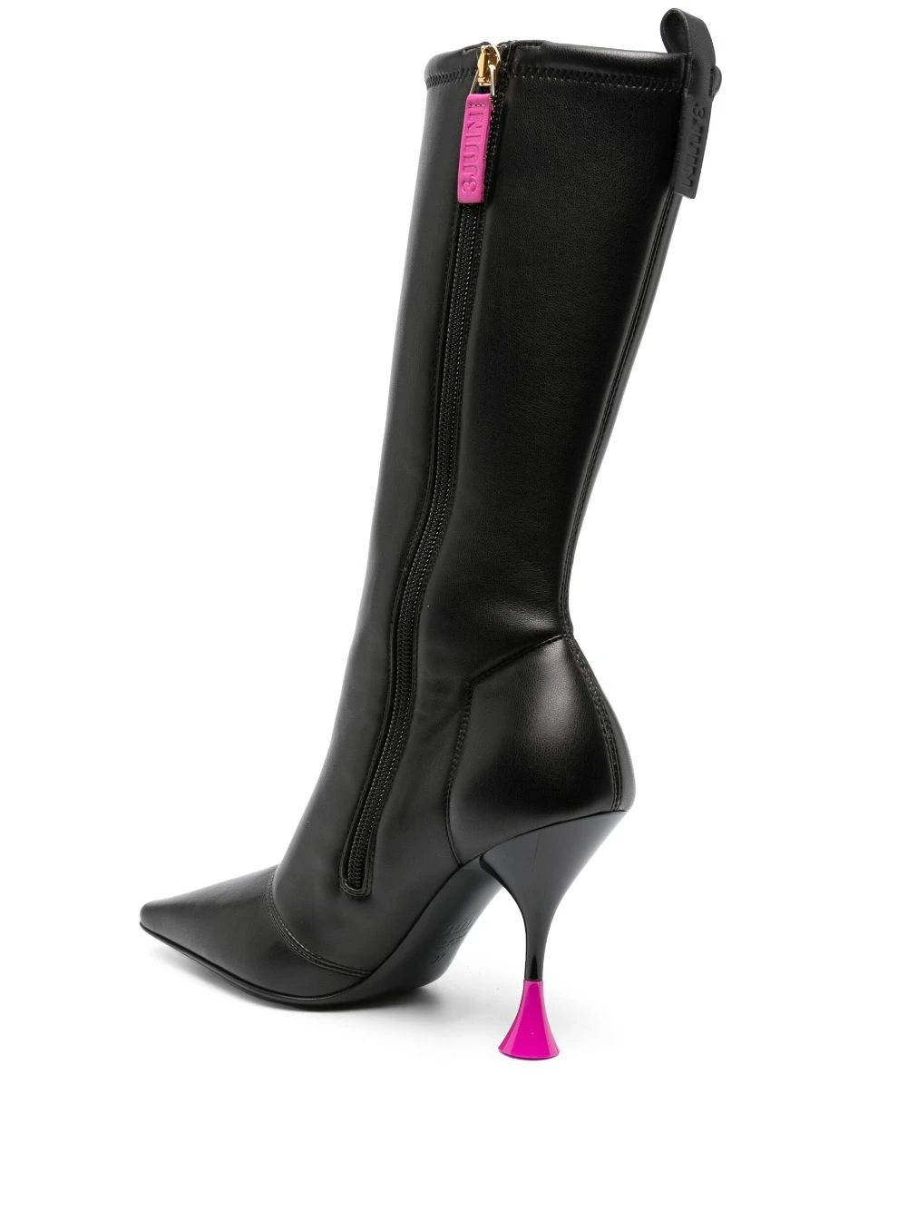 Noir, rose, cuir de veau, grain lisse, languette d’enfilage à logo au talon, bout carré, fermeture zippée sur le côté, talon sculpté haut.