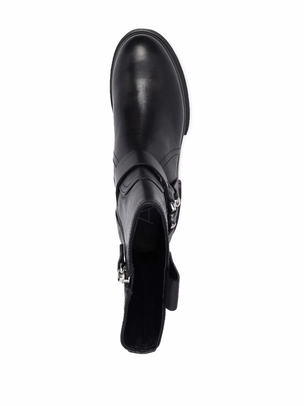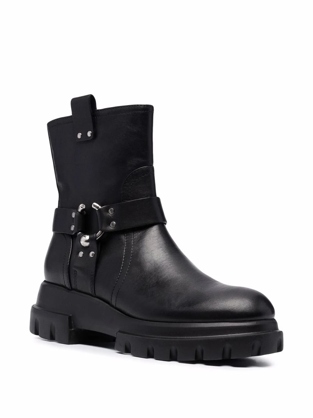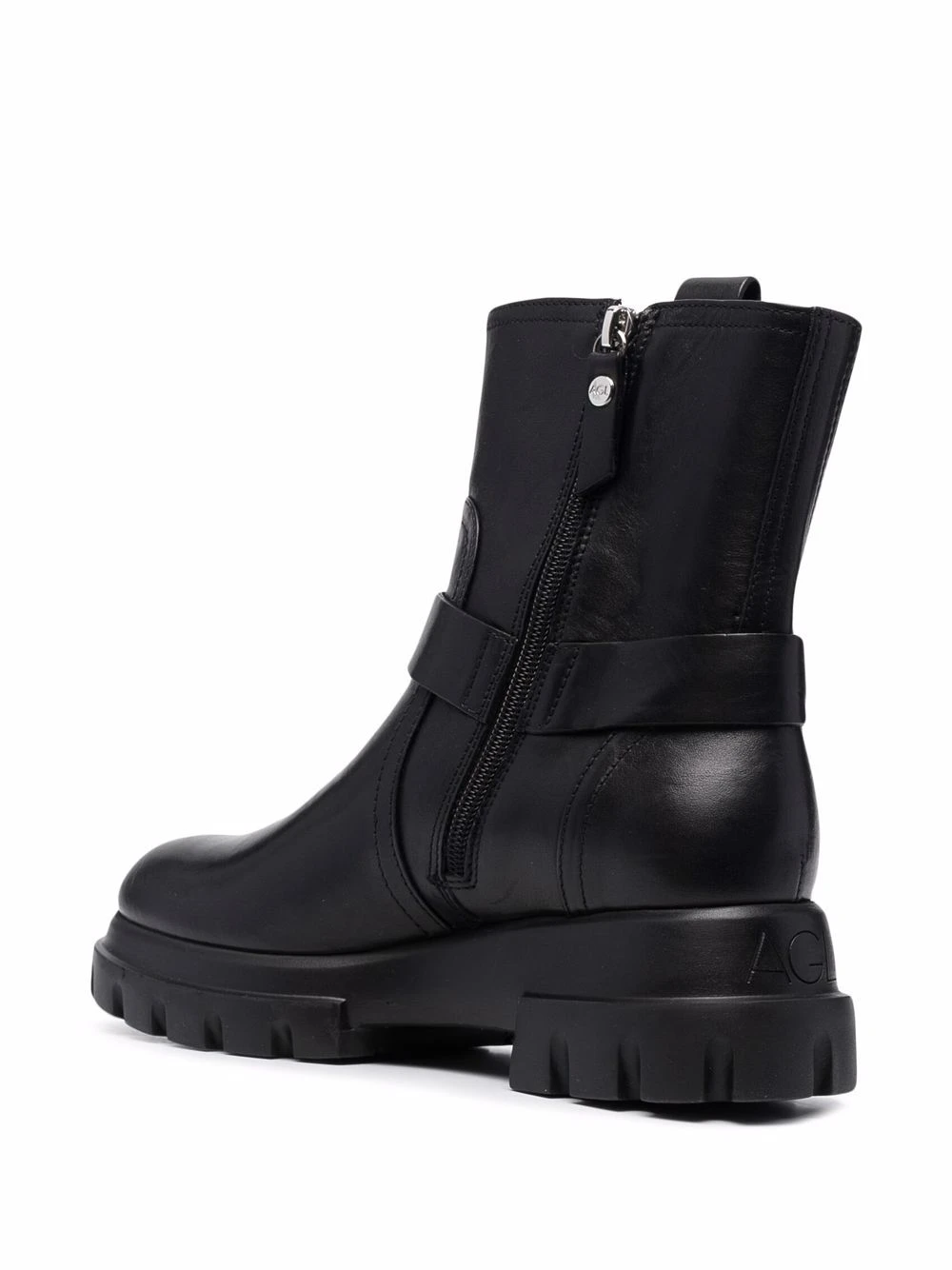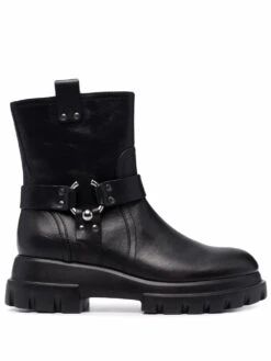 Ornements argentés, bout rond, fermeture zippée sur le côté, semelle crantée en caoutchouc. Couleur : noir. Matière : cuir.
