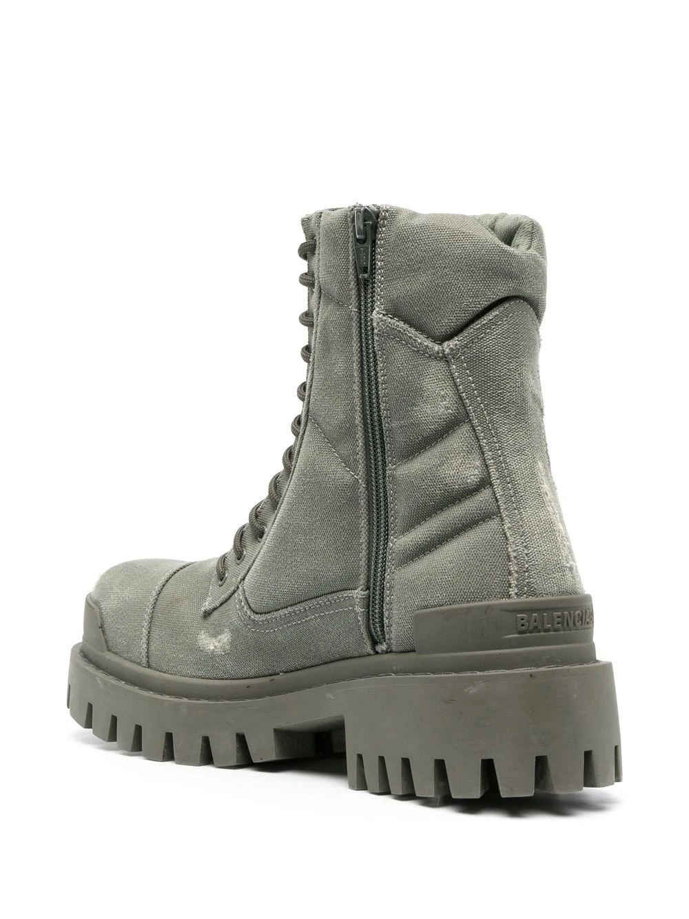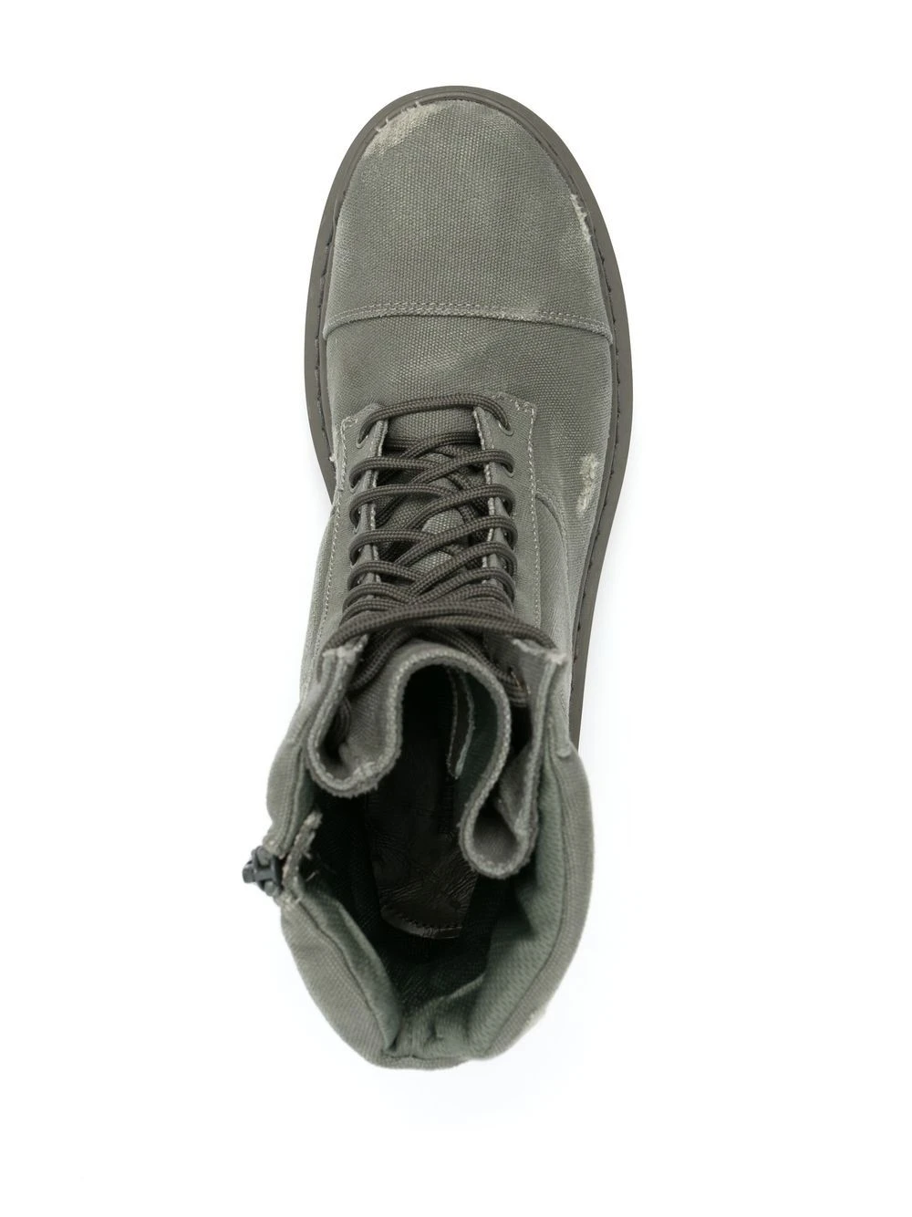 Kaki, toile, effet usé, chevilles rembourrées, fermeture à lacer sur le devant, fermeture zippée sur les côtés, bout rond, semelle épaisse crantée en caoutchouc. CHOIX CONSCIENT : nous nous sommes associés à Good On You — une agence éthique qui évalue la performance durable des marques. Cet article vient d’une marque qui est bien notée sur son impact sur la planète..