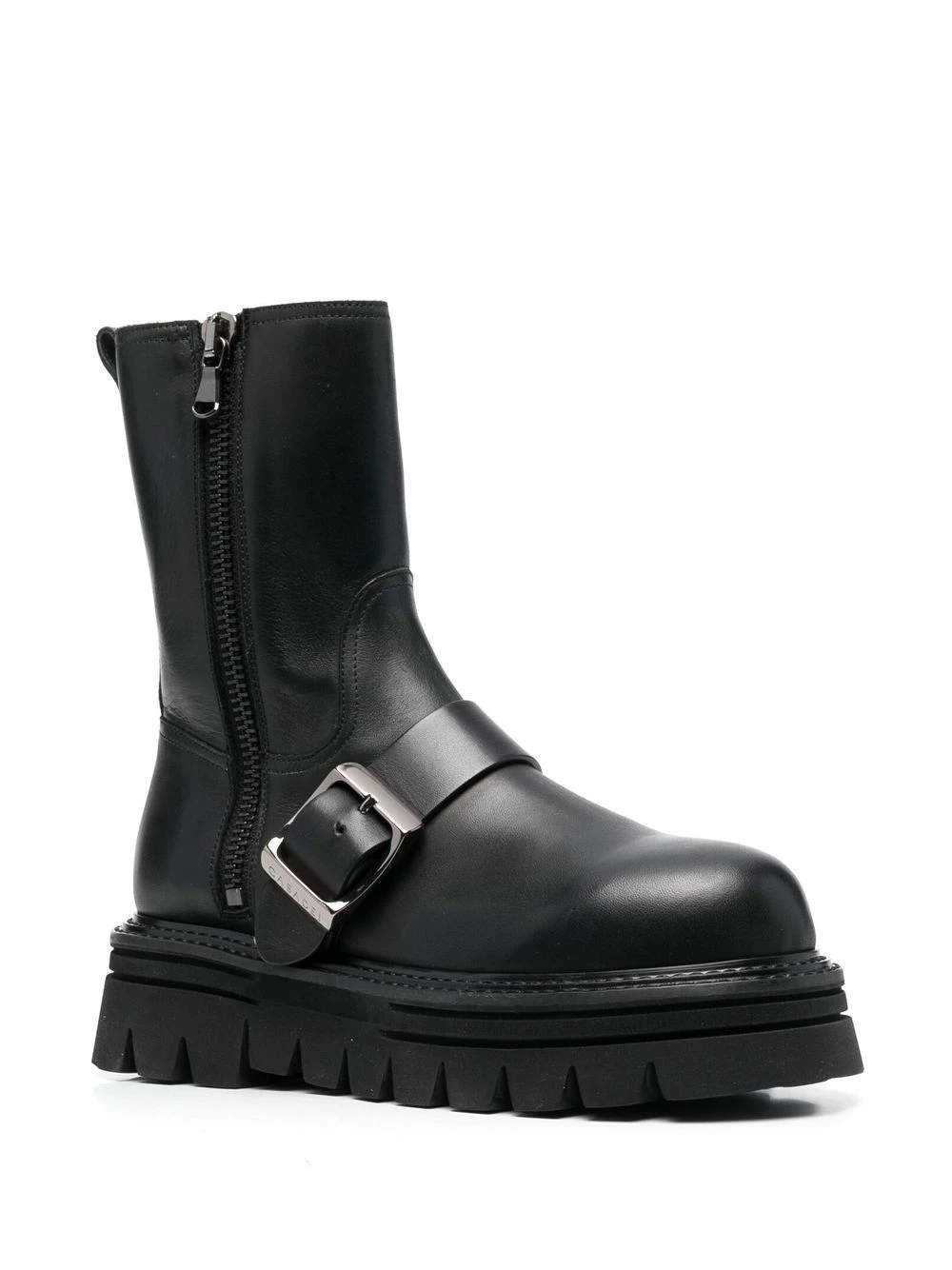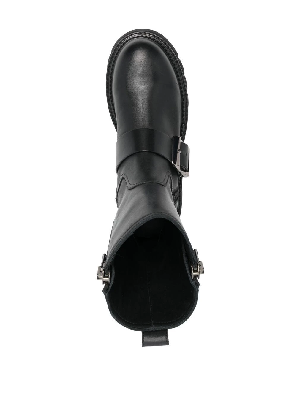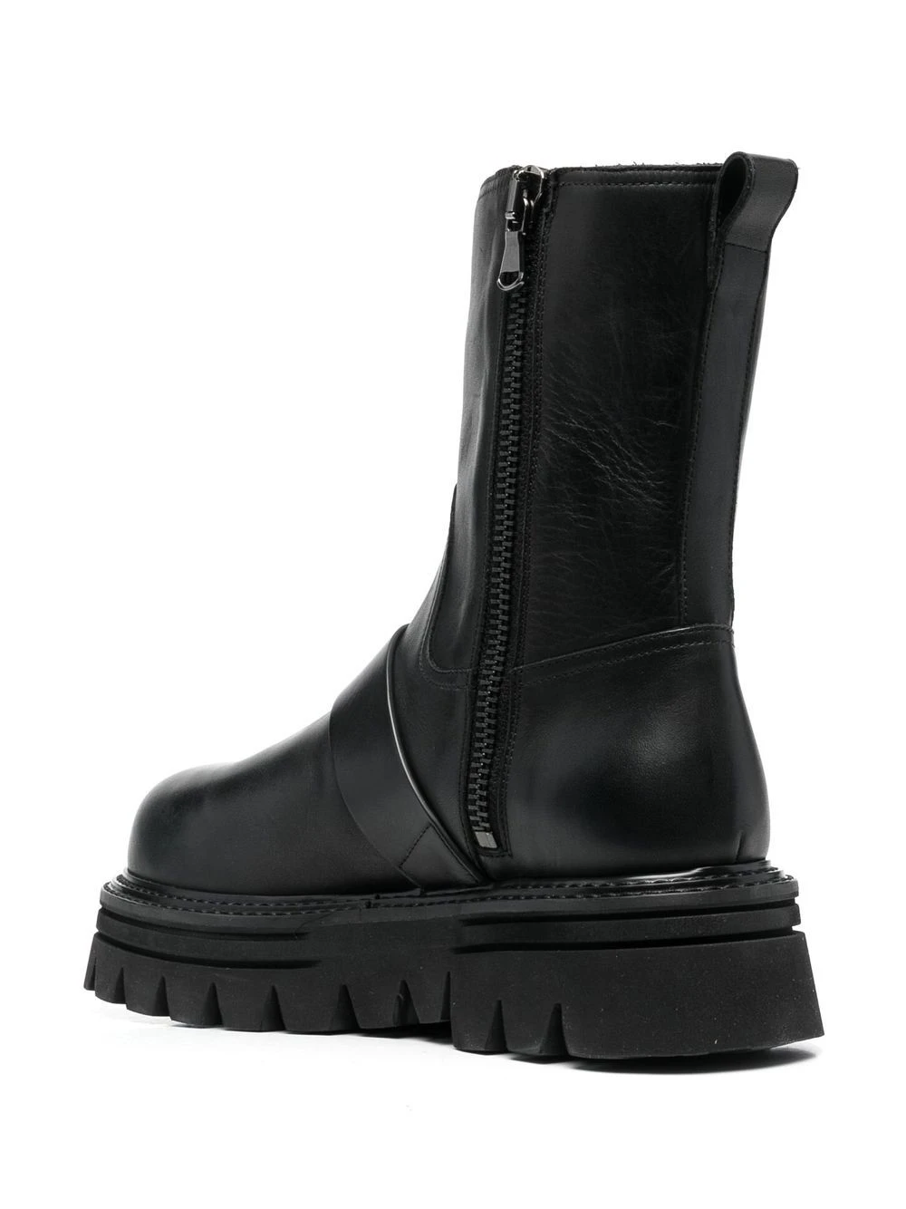 Hauteur cheville, fermeture à boucles sur les côtés, fermeture zippée sur le côté, bout rond, semelle intérieure à logo, semelle crantée en caoutchouc.