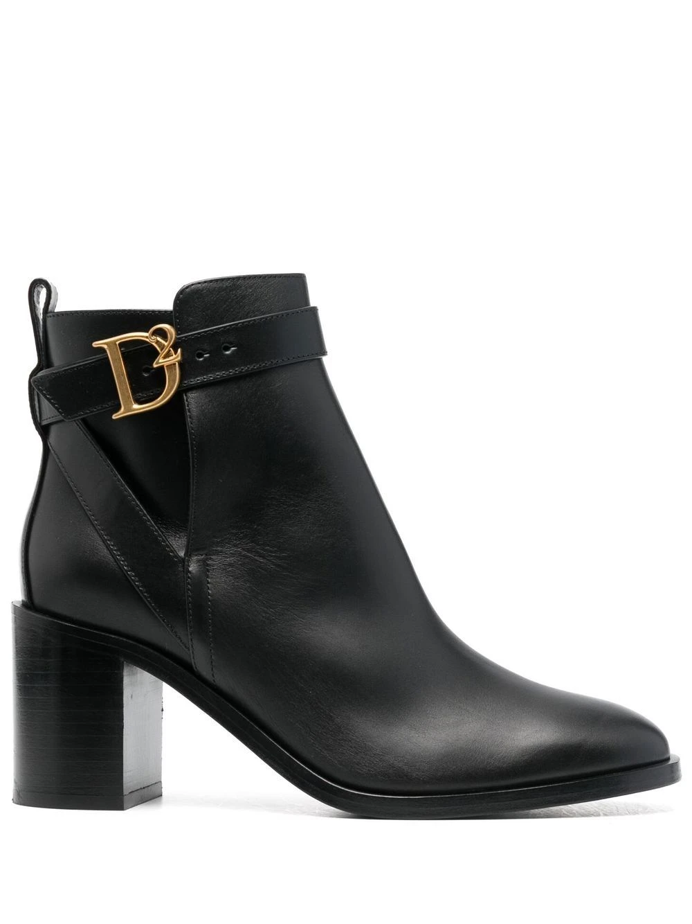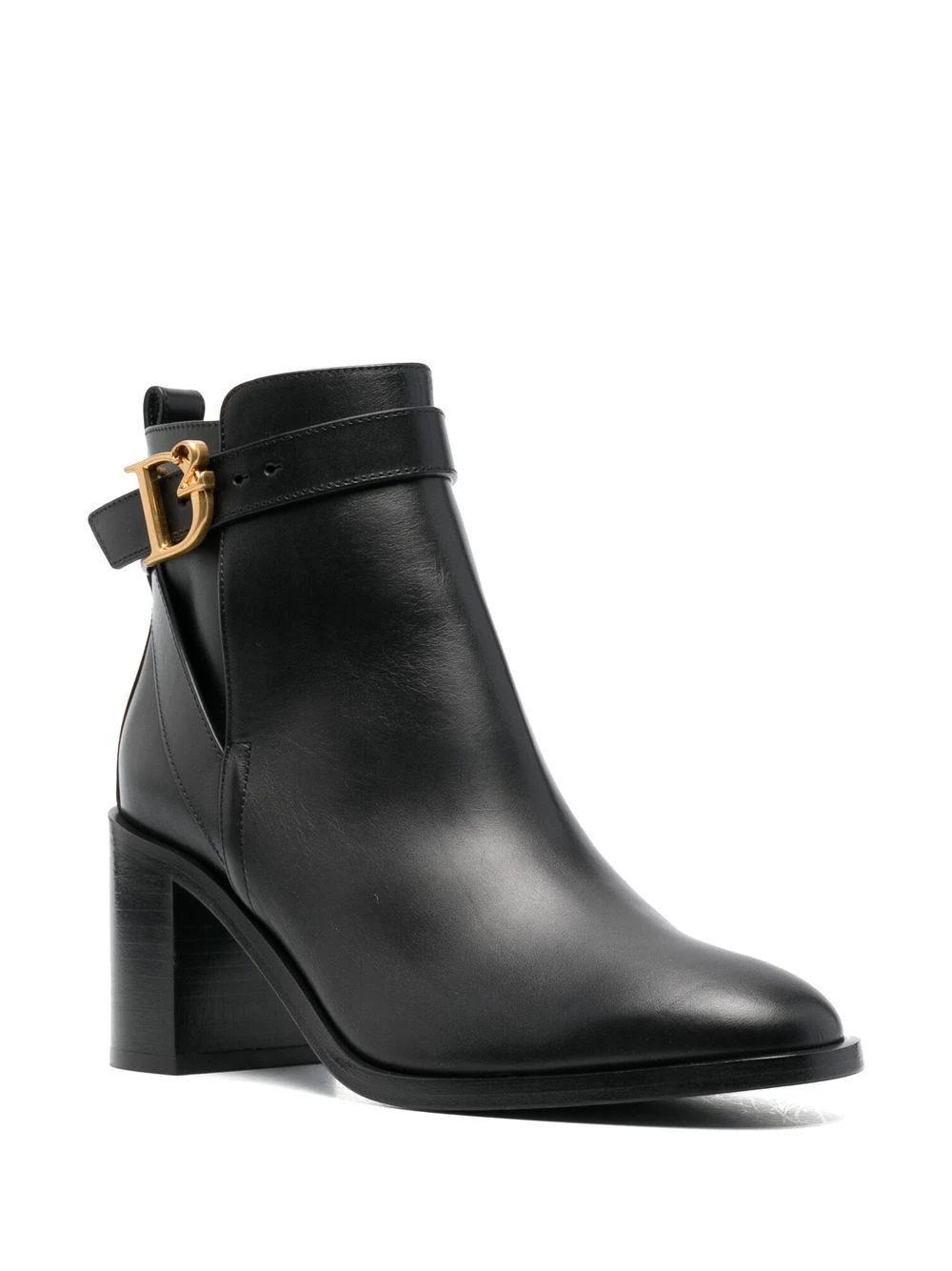 Noir, cuir de veau, détail de boucle à logo, bout pointu, design à enfiler, talon haut épais.