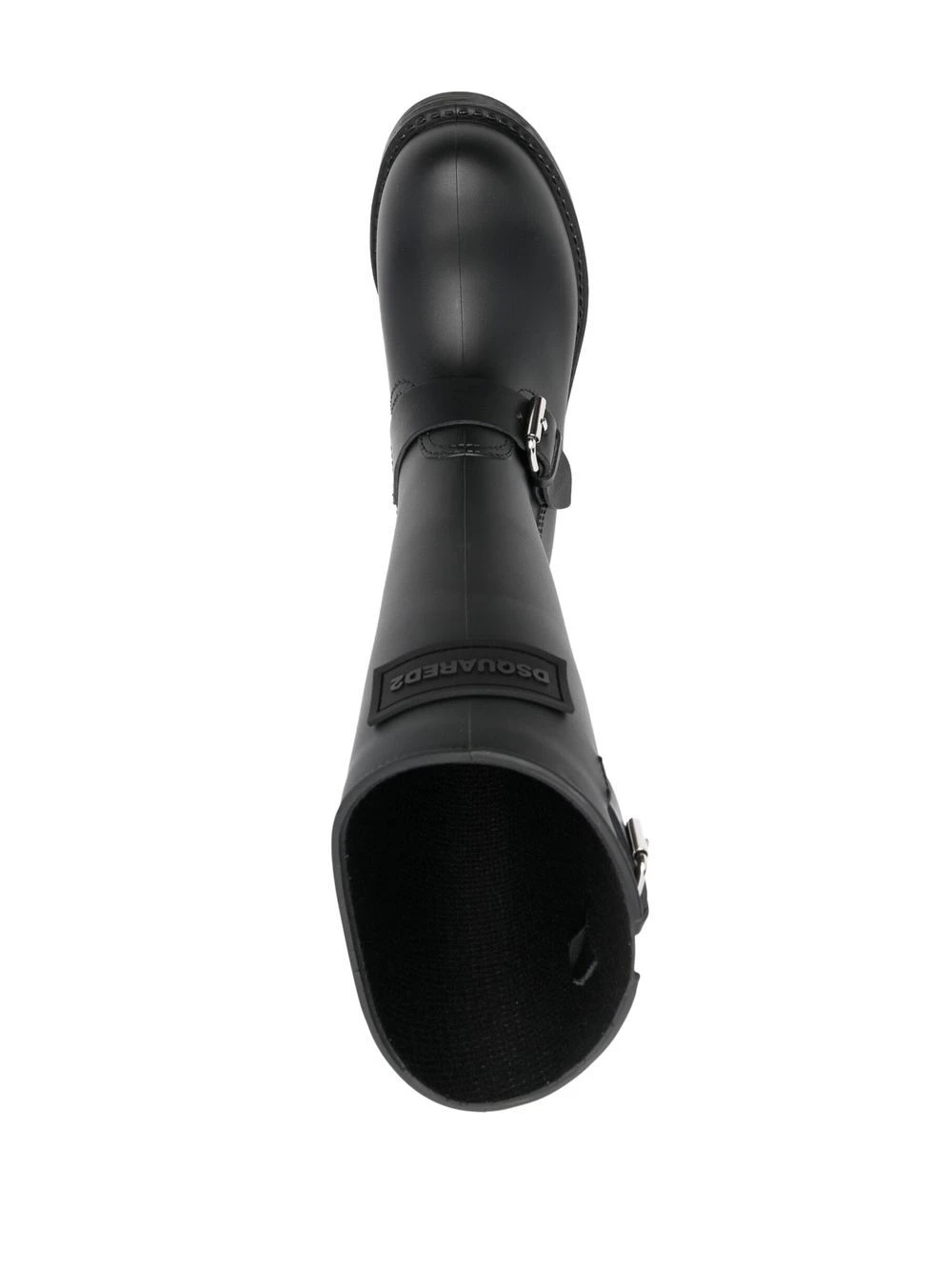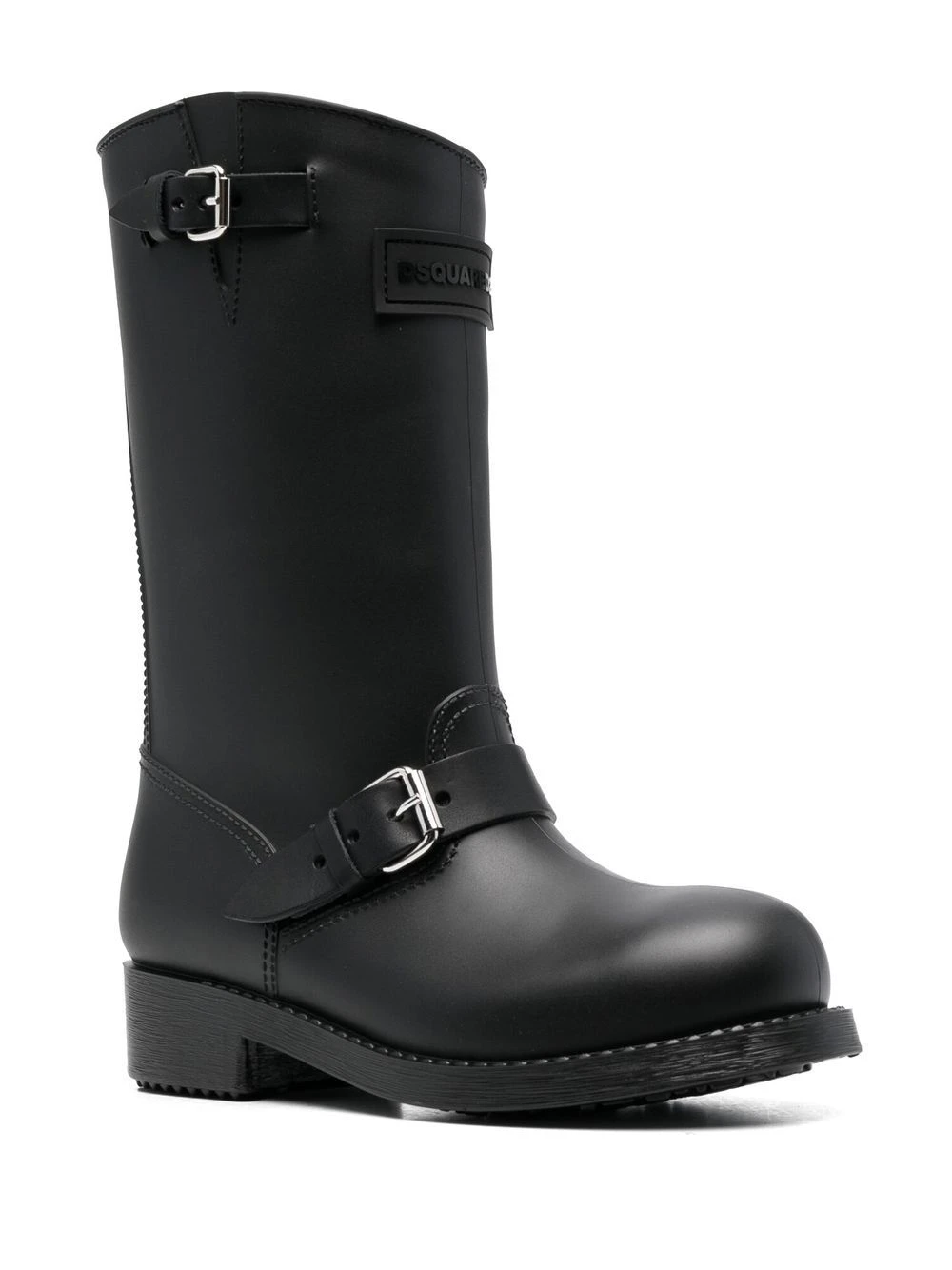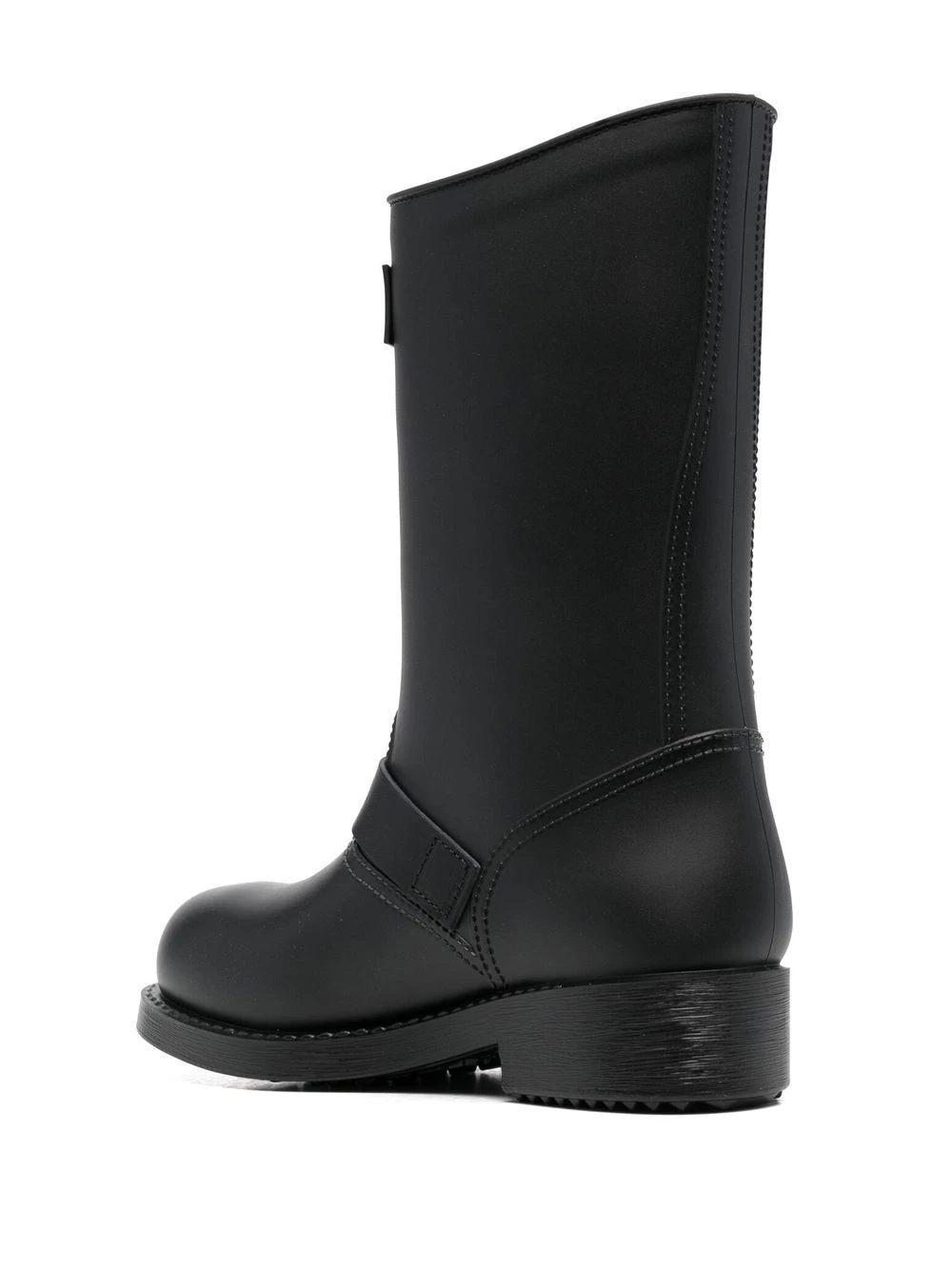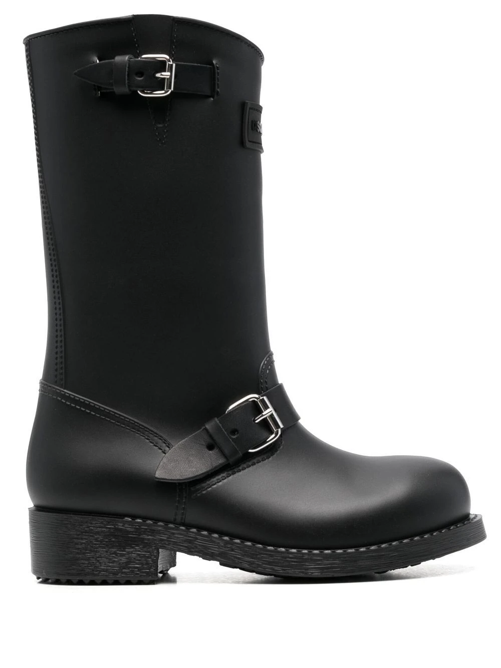 Noir, patch logo sur le devant, bout rond, finitions à boucle décorative, longueur midi, petit talon.
