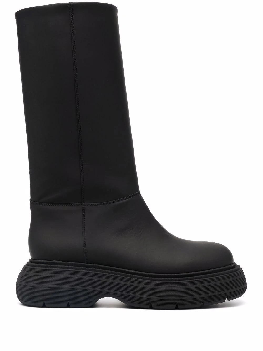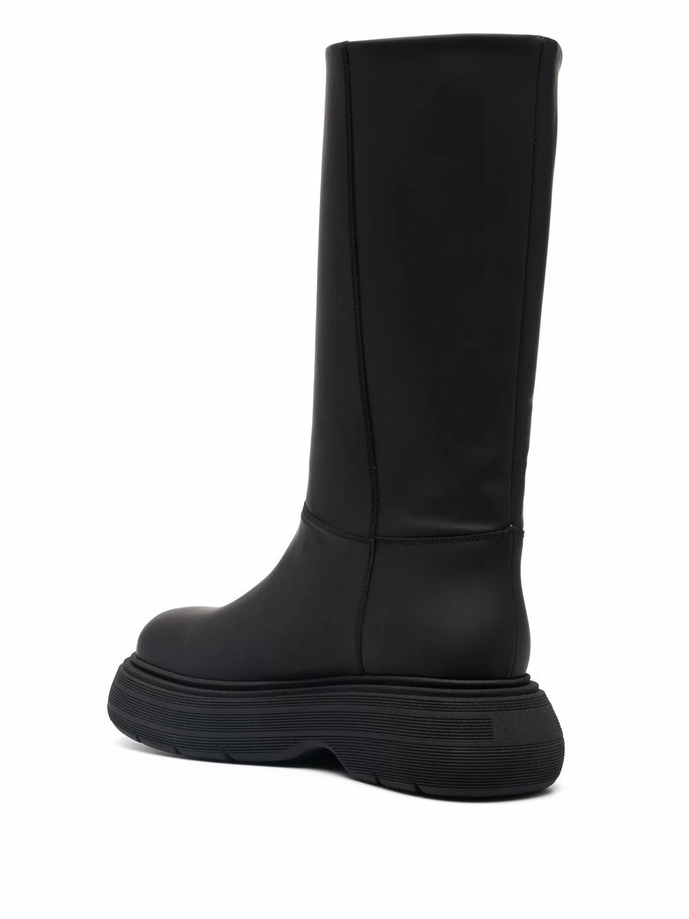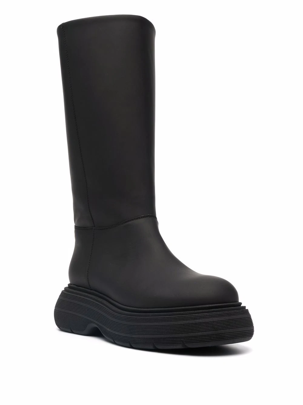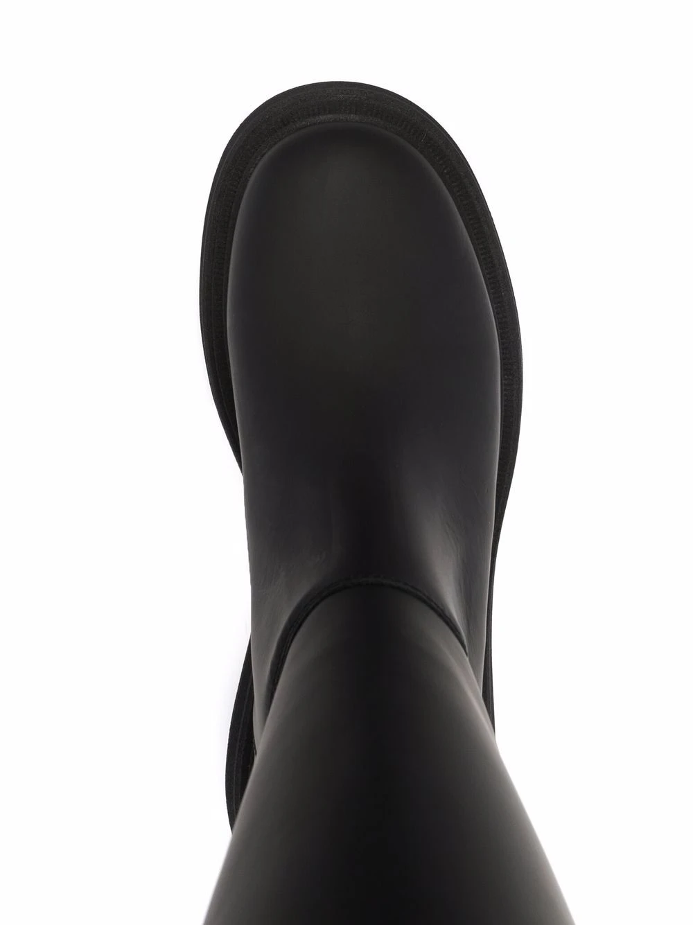 Coutures ton sur ton, bout en amande, longueur mollet, semelle intérieure à logo, semelle crantée en caoutchouc. Couleur : noir. Matière : cuir.