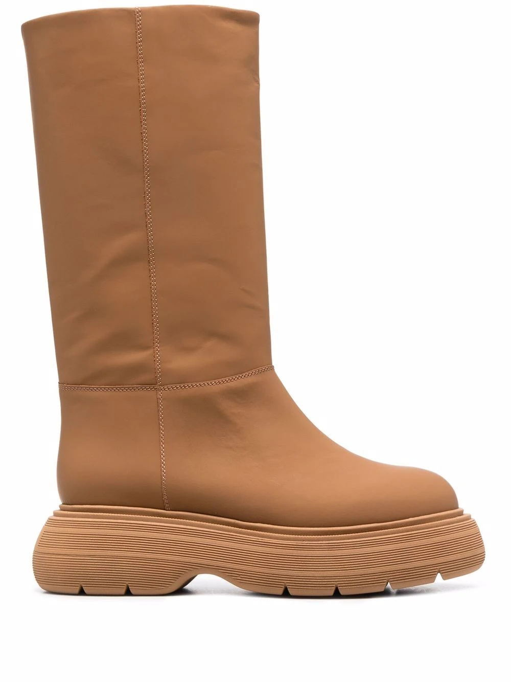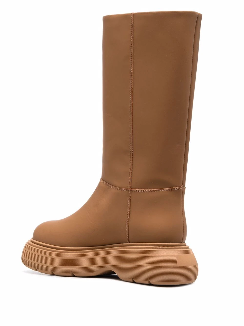 Bout rond, à enfiler, semelle en caoutchouc. Matière : cuir.