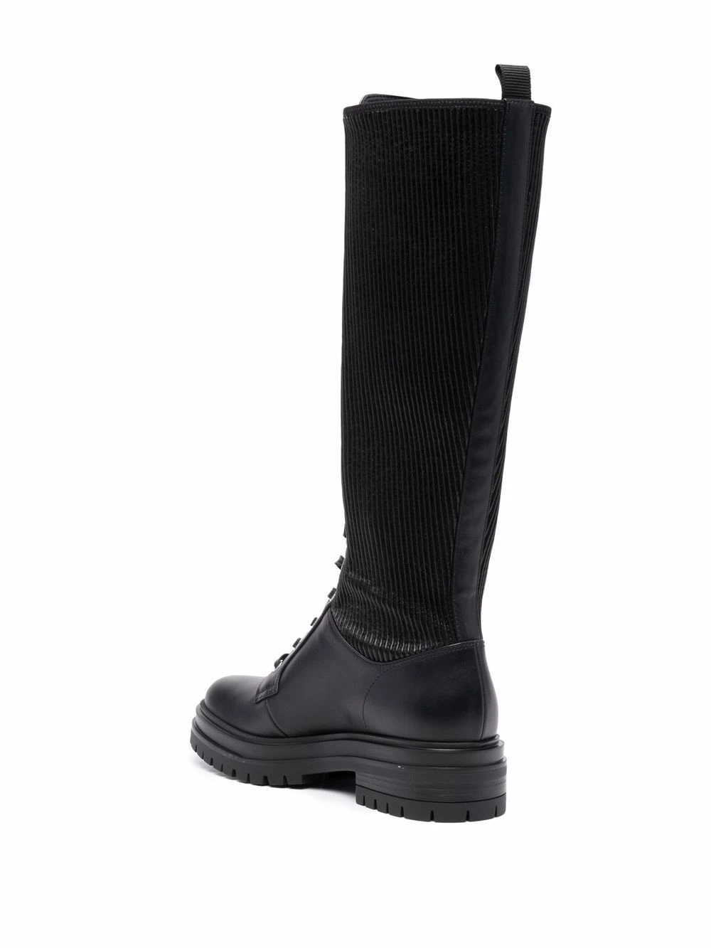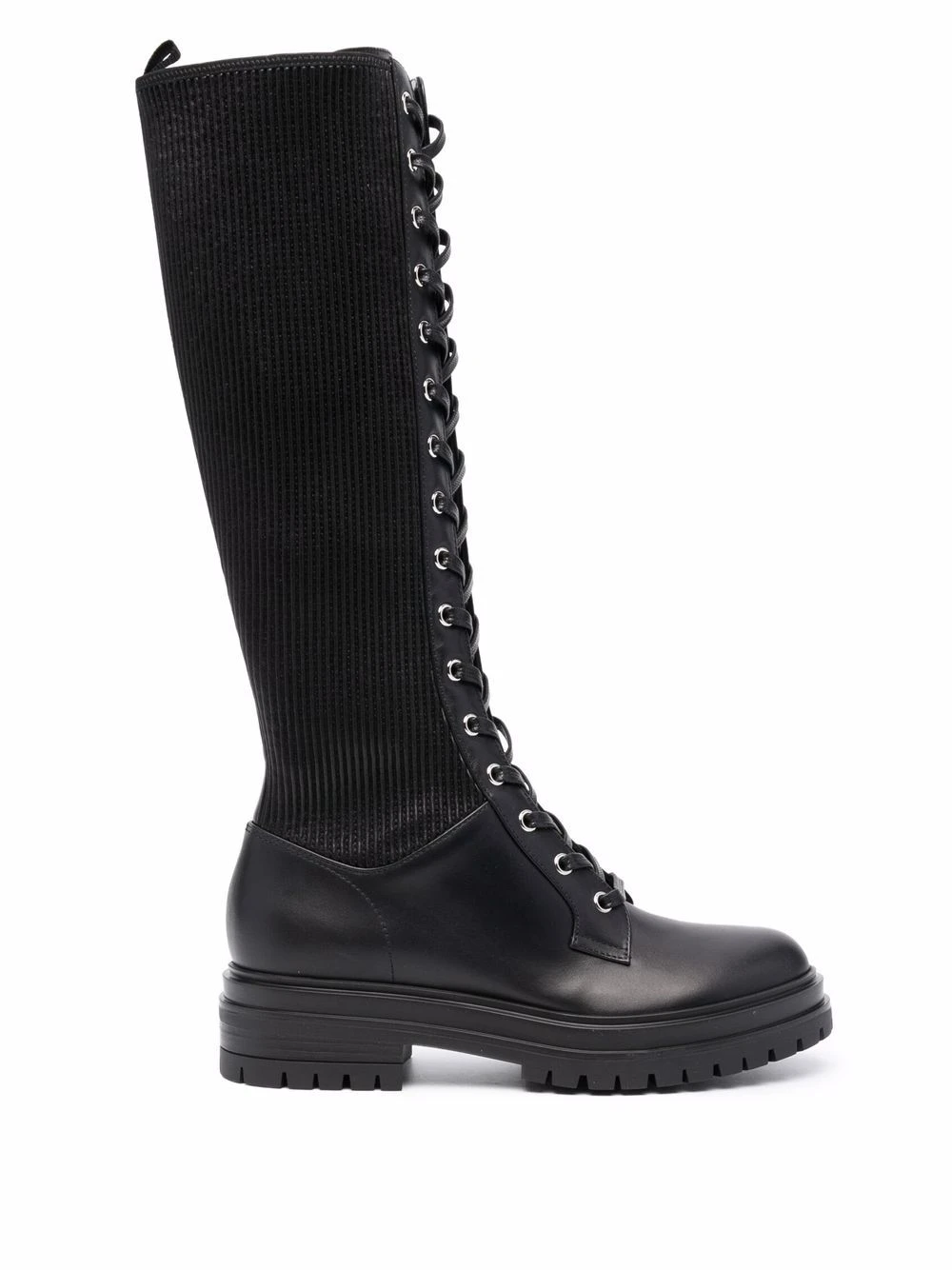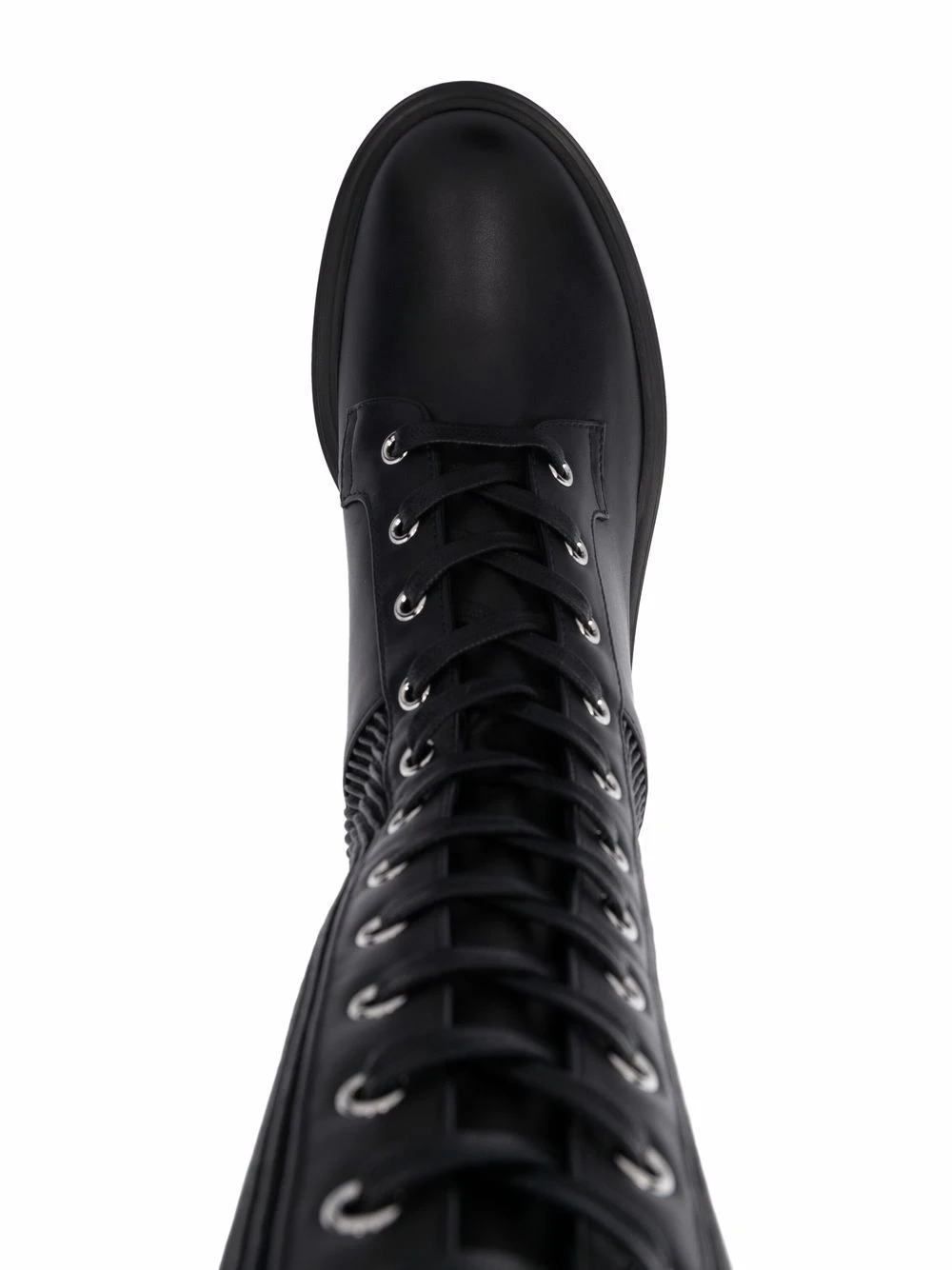 Bout rond, semelle crantée en caoutchouc, fermeture à lacer sur le devant, détail nervuré. Couleur : noir. Matière : cuir.