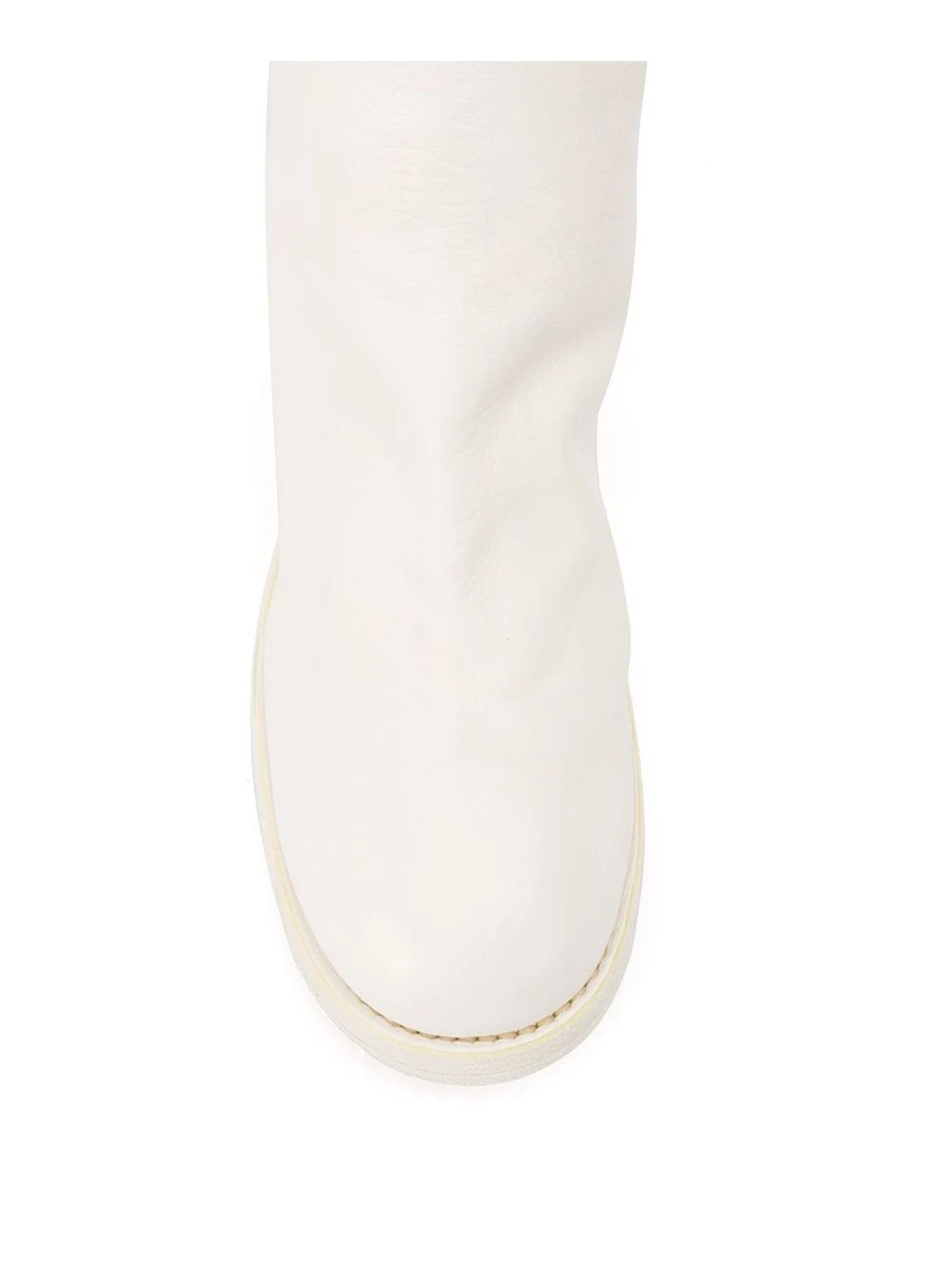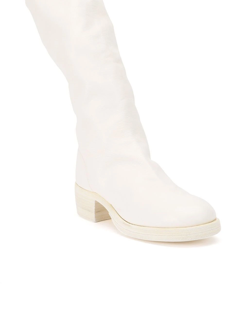 Bottes à fermeture arrière zippée en cuirs Guidi avec talon bottier, bout rond et fermeture zippée arrière. Couleur : blanc.