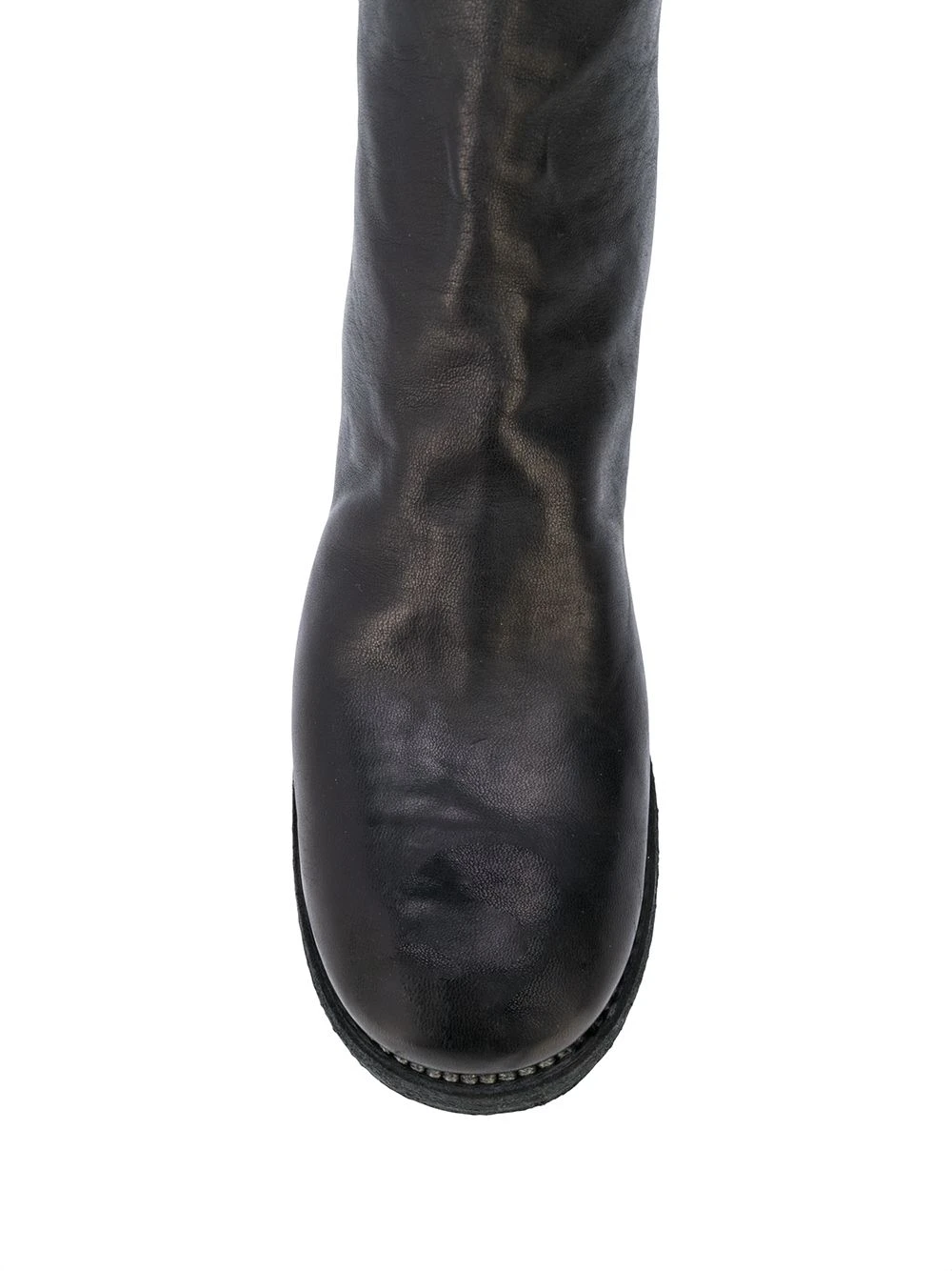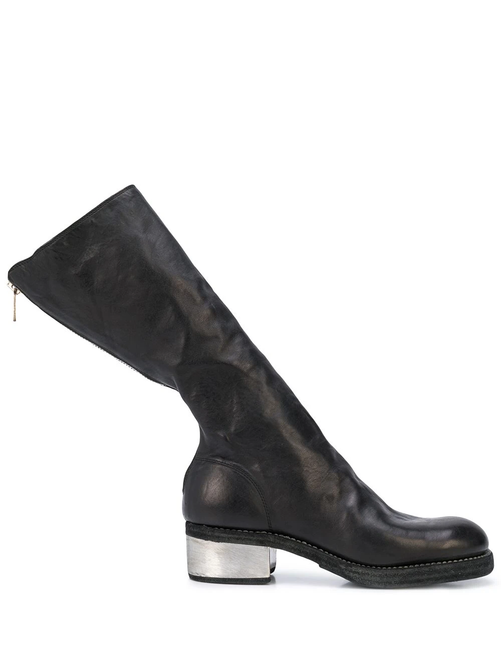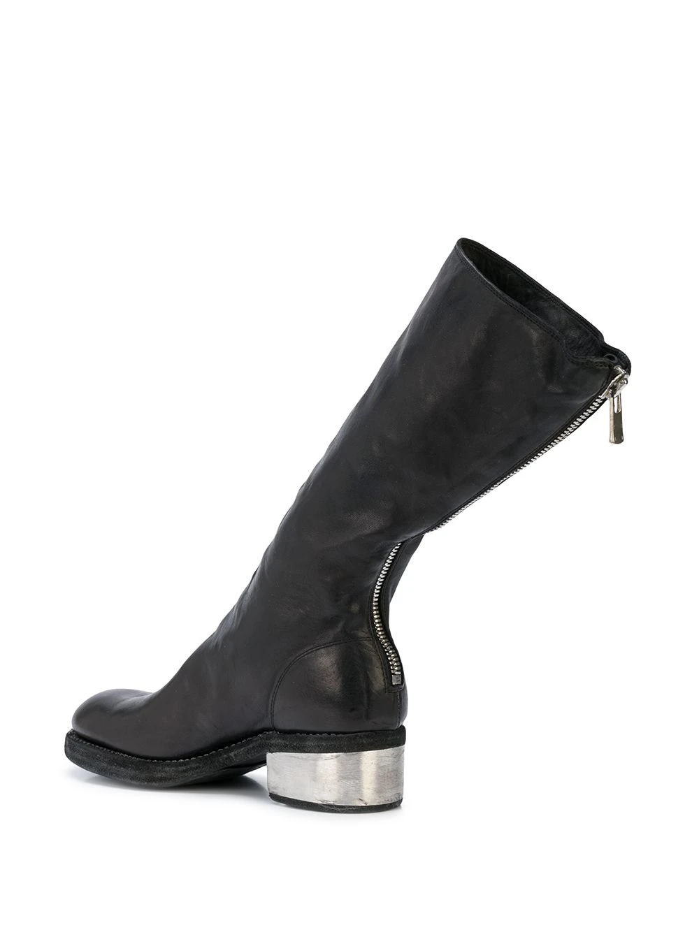 Bottes à petit talon métallisé Guidi avec bout rond, fermeture zippée arrière et petit talon. Couleur : noir.