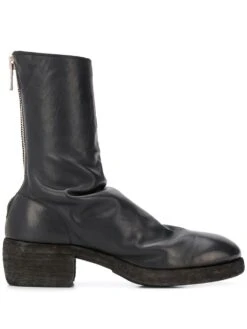 Bottes en cuir 788Z Guidi avec longueur mi-mollet, fermeture zippée arrière, empiècements à coutures visibles, petit talon épais, bout rond et semelle en cuir. Couleur : noir.