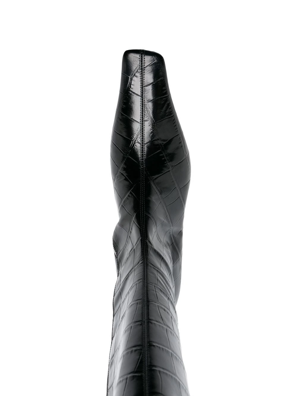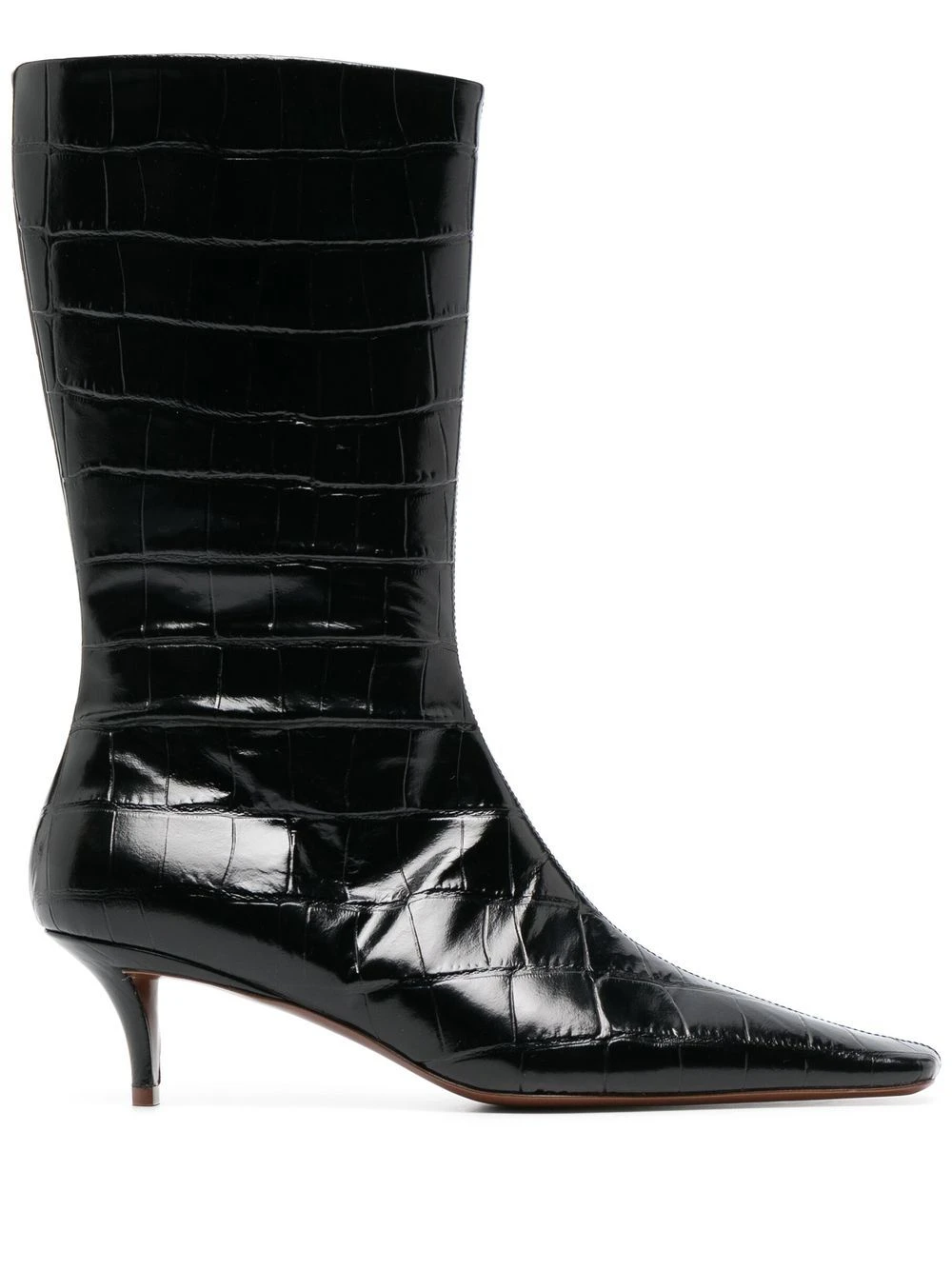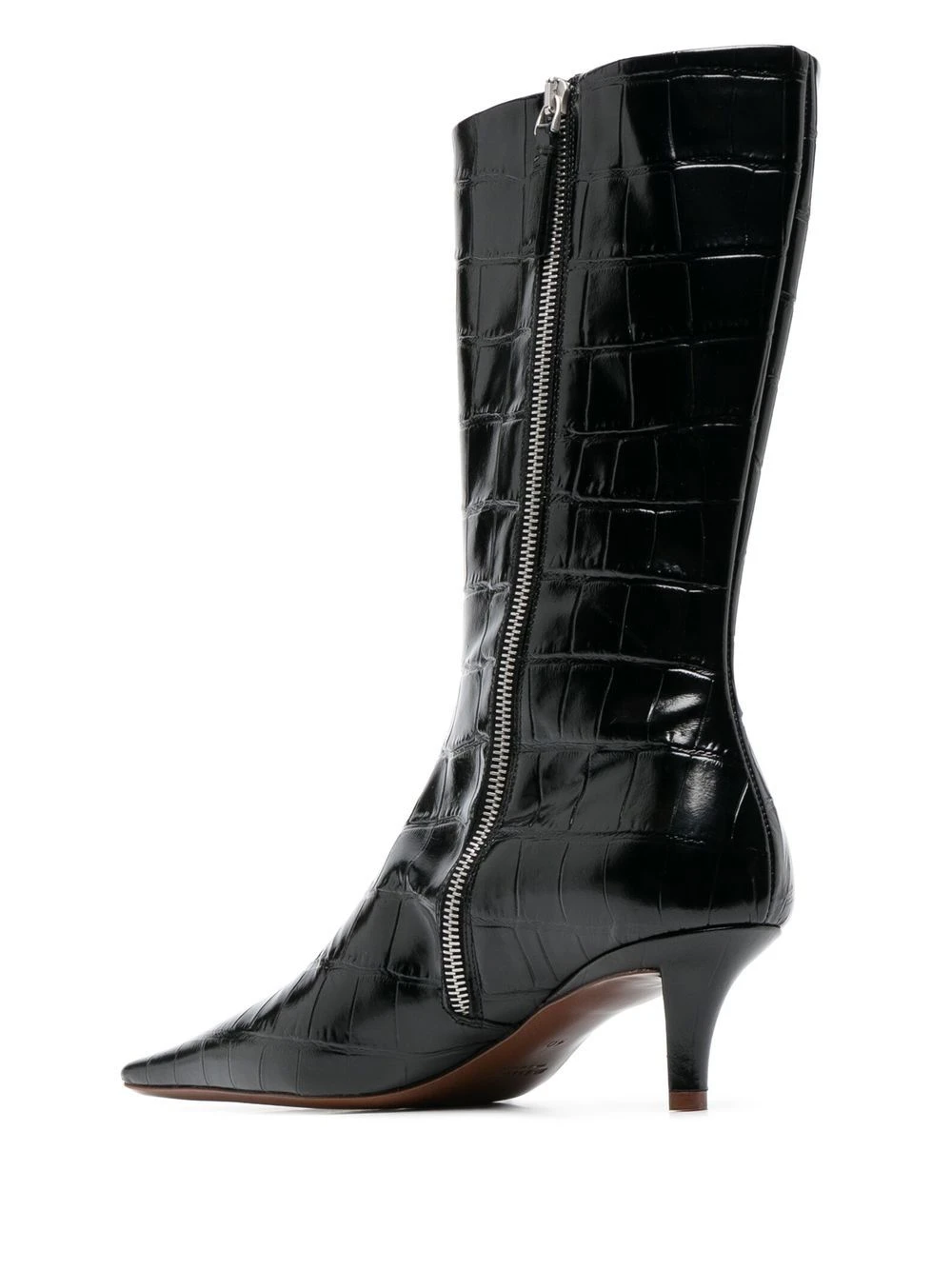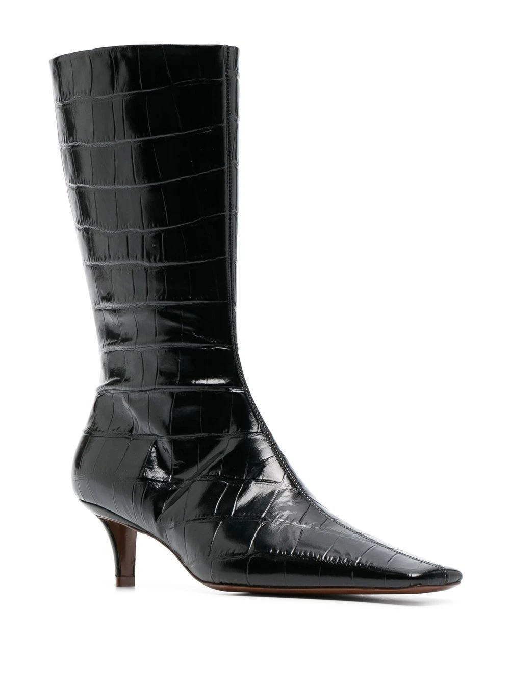 Doublure en cuir, effet peau de crocodile, bout carré, fermeture zippée sur le côté, petit talon.