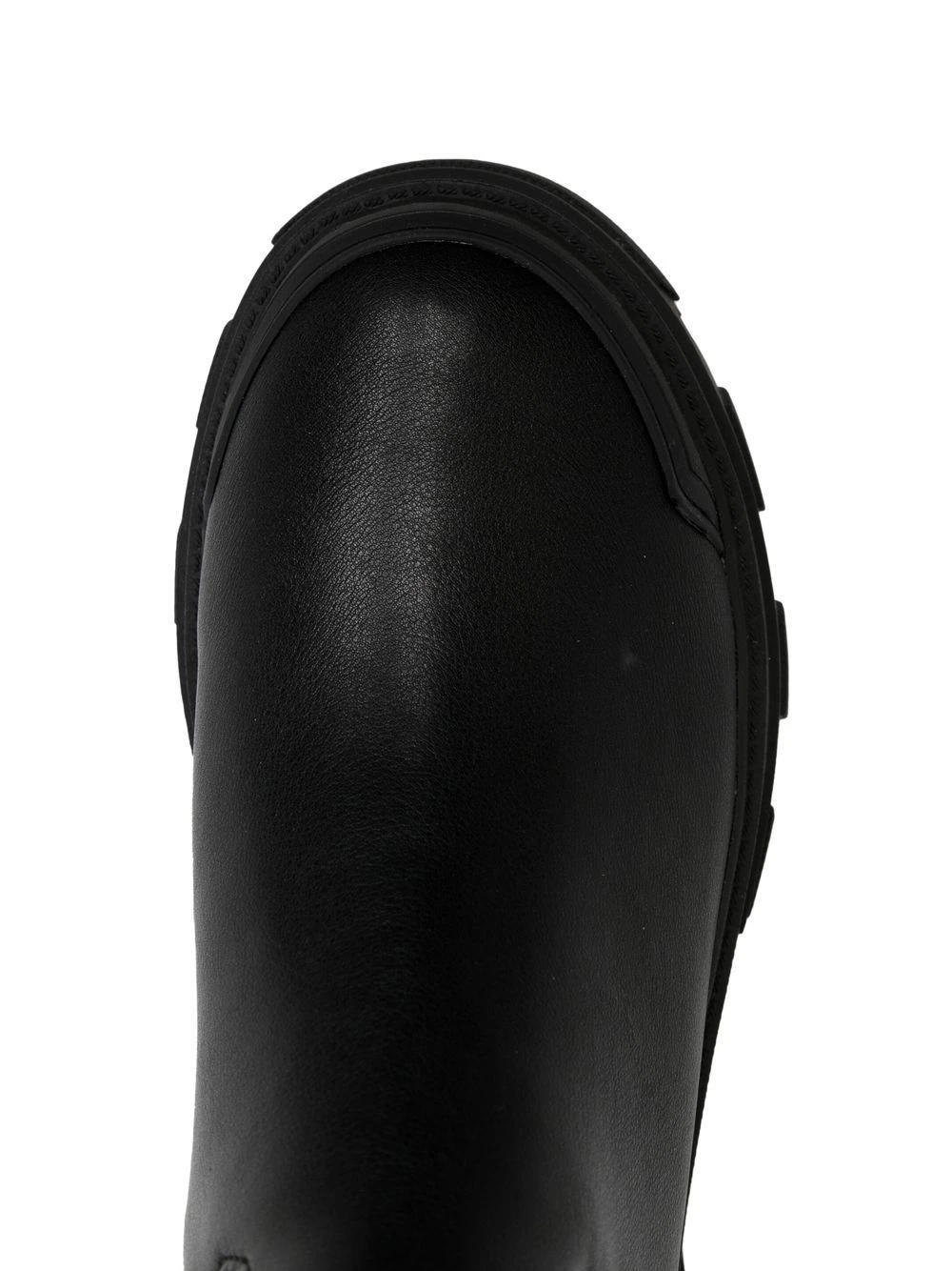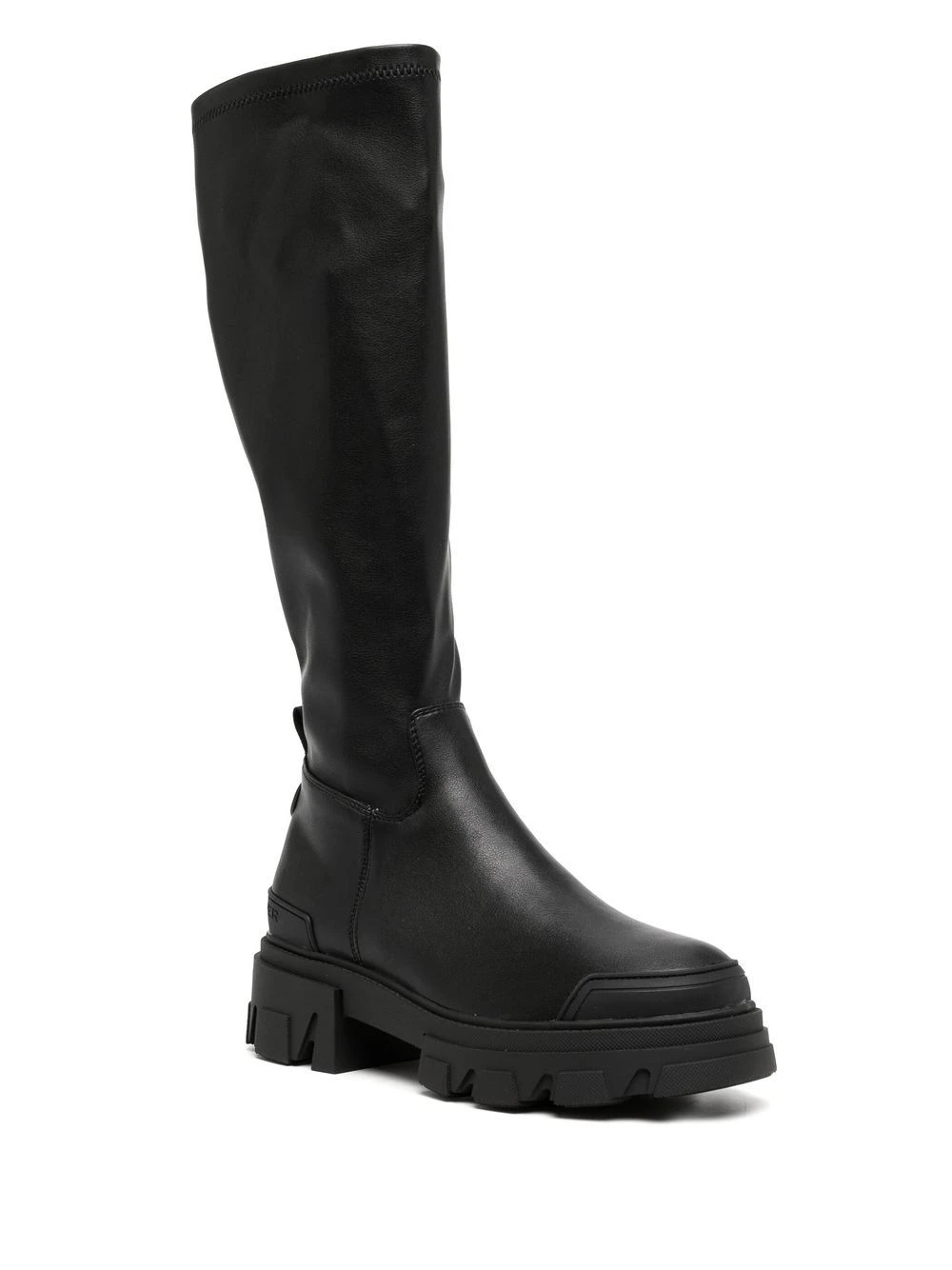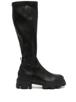 Cuir artificiel, languette d’enfilage au talon, cheville style chaussette, design à enfiler, bout rond, semelle épaisse crantée en caoutchouc, petit talon épais.