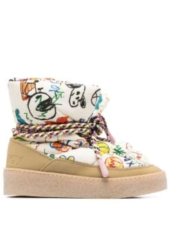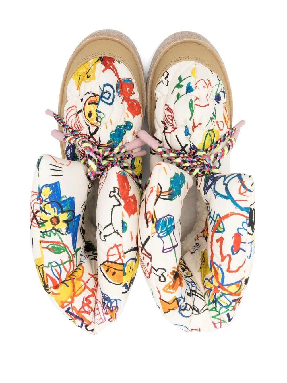 Blanc/multicolore, imprimé graphique intégral, fermeture à lacer sur le devant, bout rond, semelle épaisse en caoutchouc.
