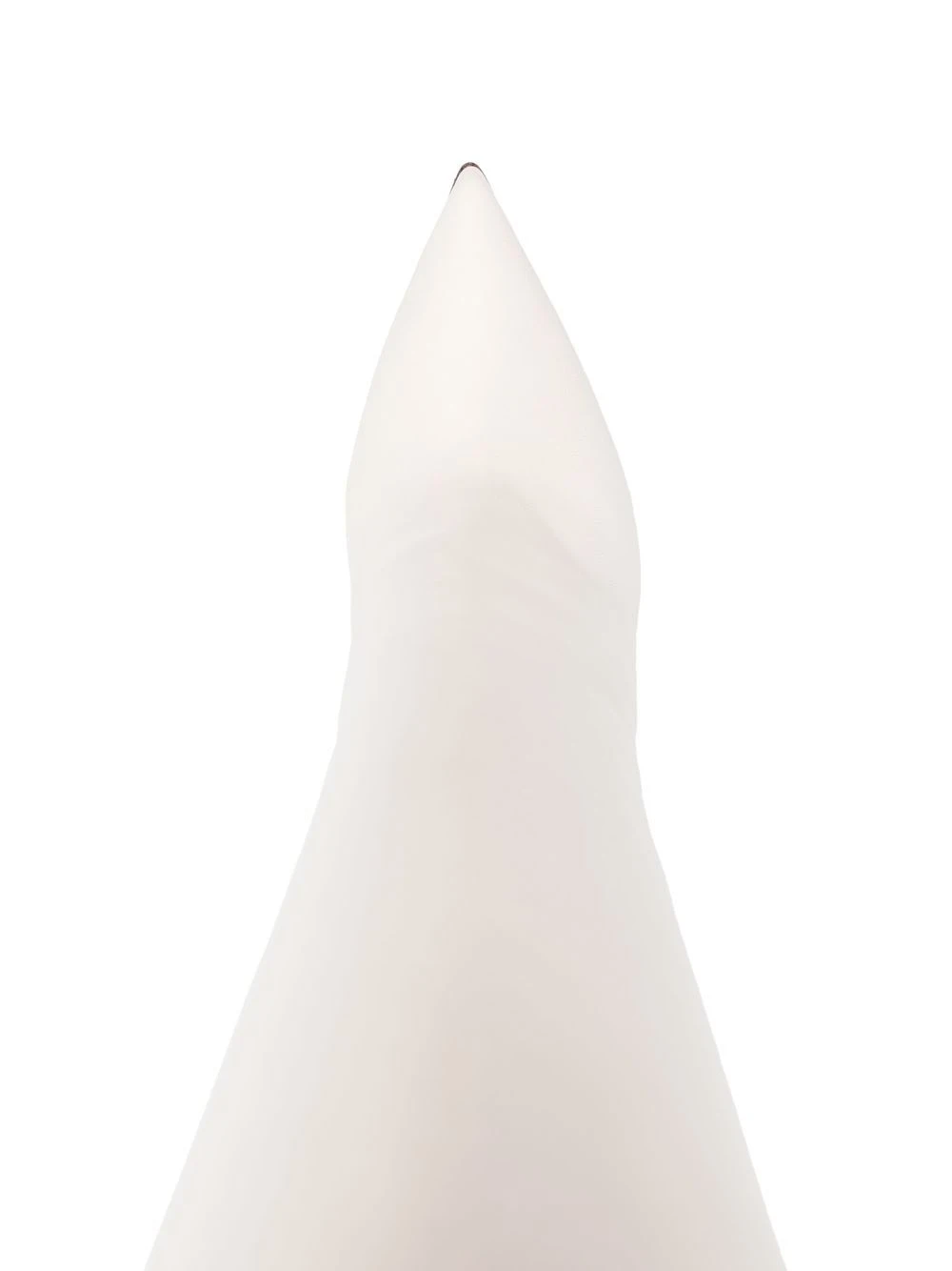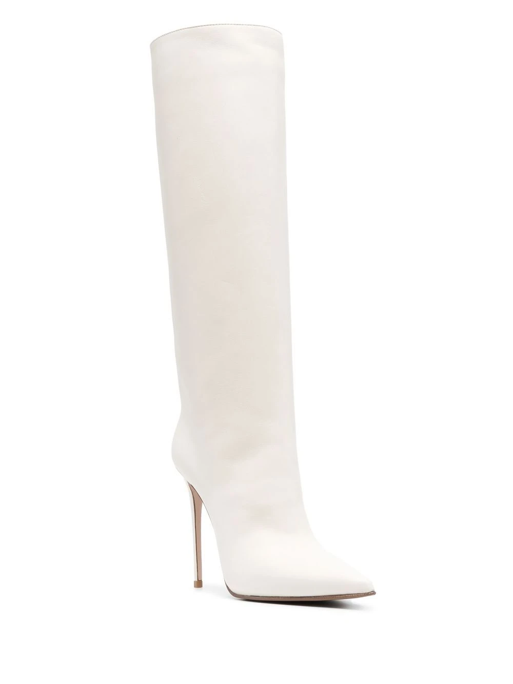 Lait, cuir de veau, bout pointu, hauteur genou, design Ă enfiler, talon aiguille haut.
