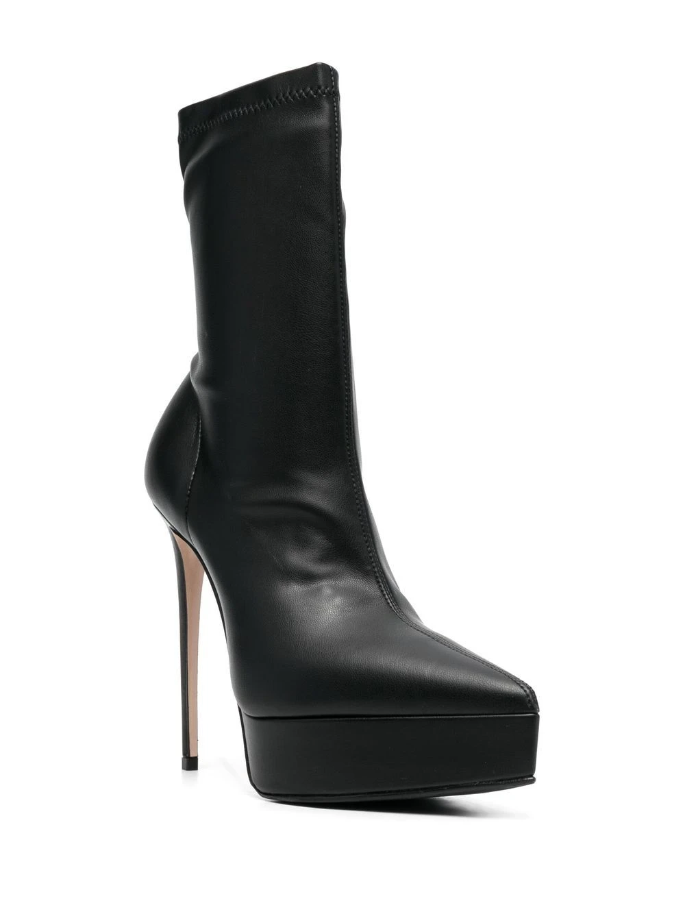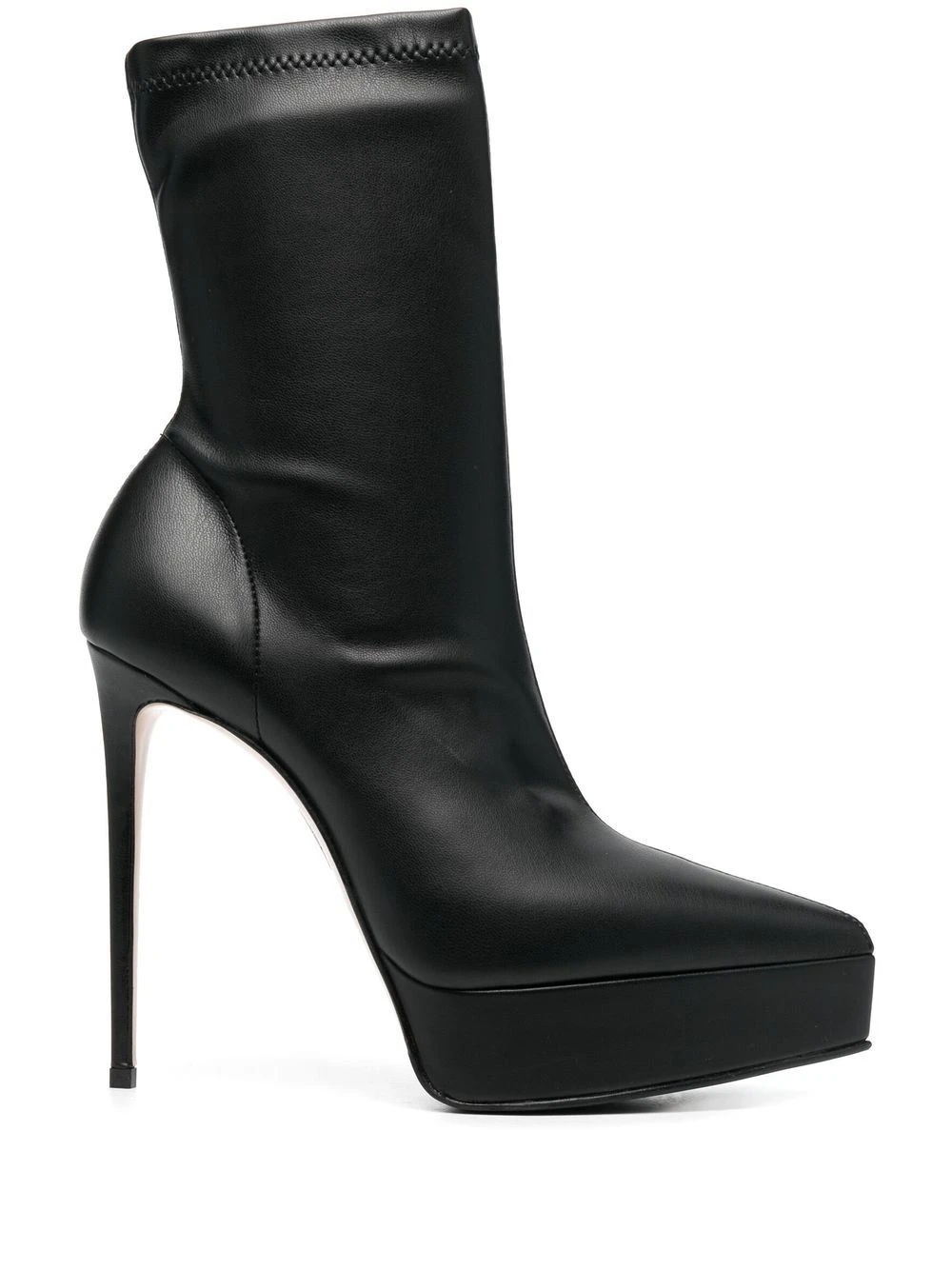 Noir, cuir de veau, semelle à plateforme, talon haut, design à enfiler.