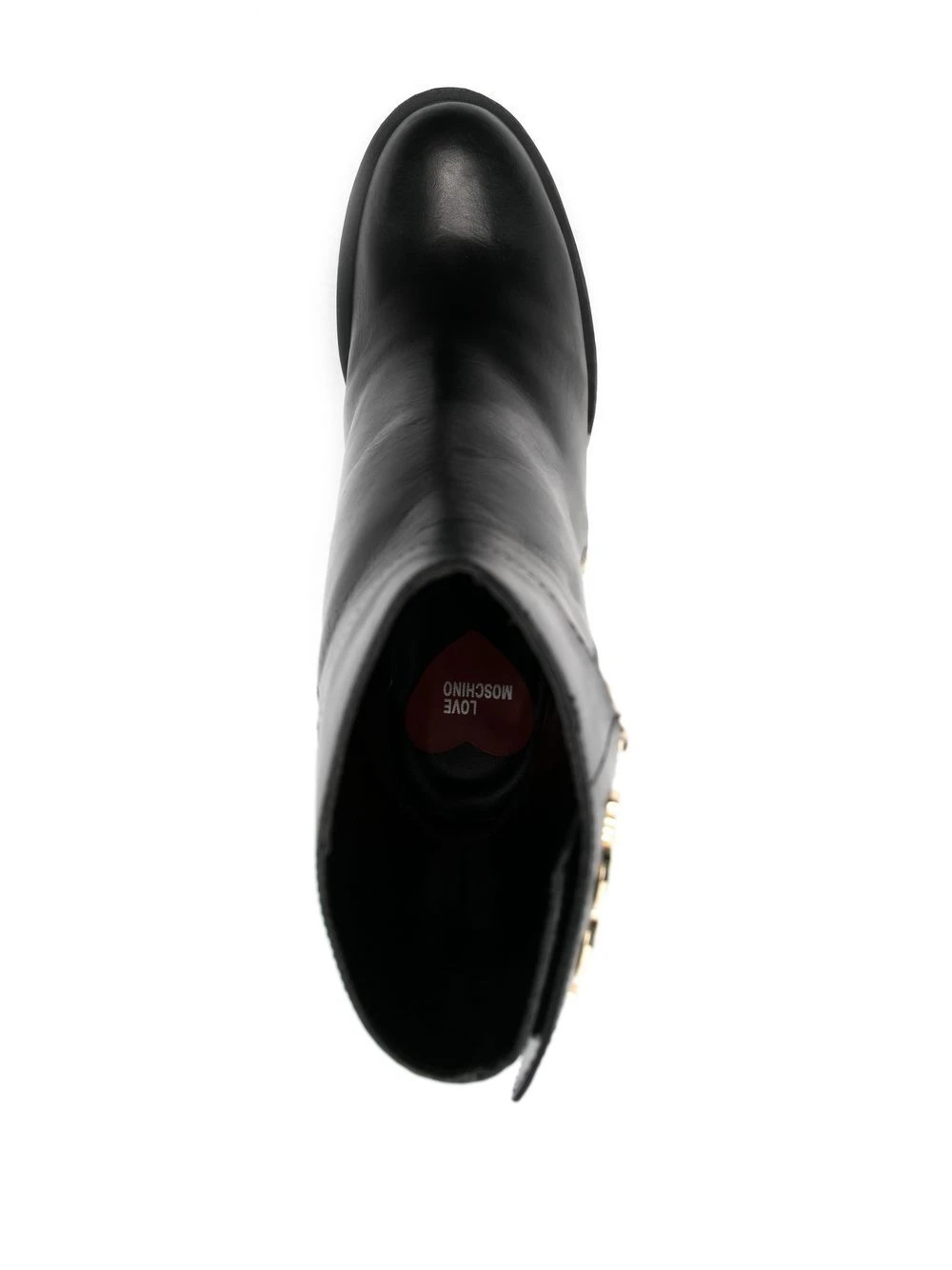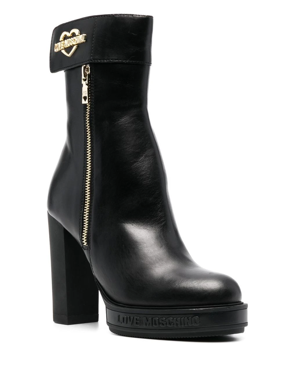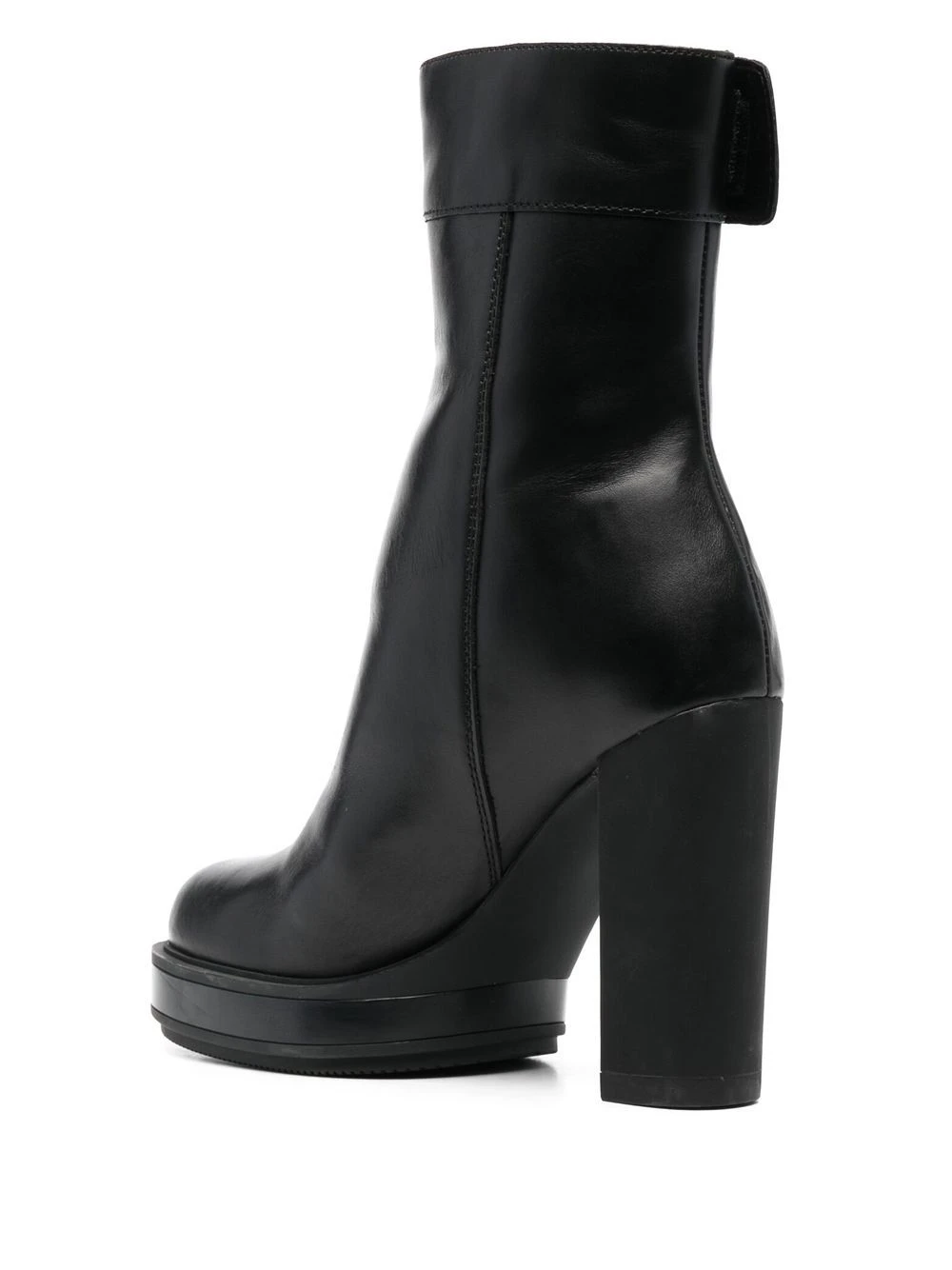 Noir, cuir de veau, bout en amande, fermeture zippée sur les côtés, plaque logo, logo embossé sur le côté, semelle intérieure griffée.