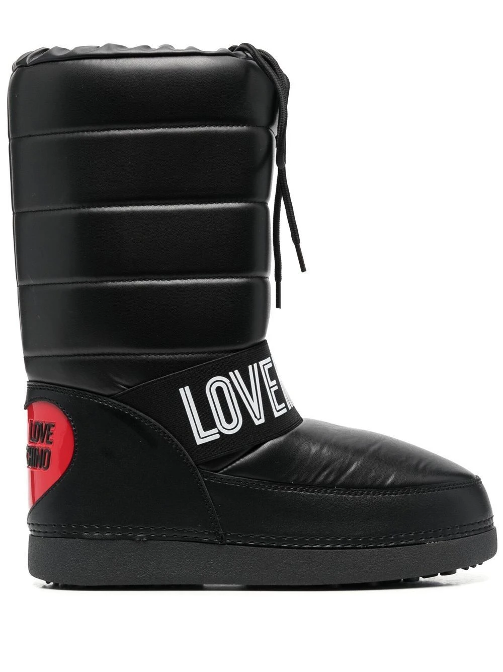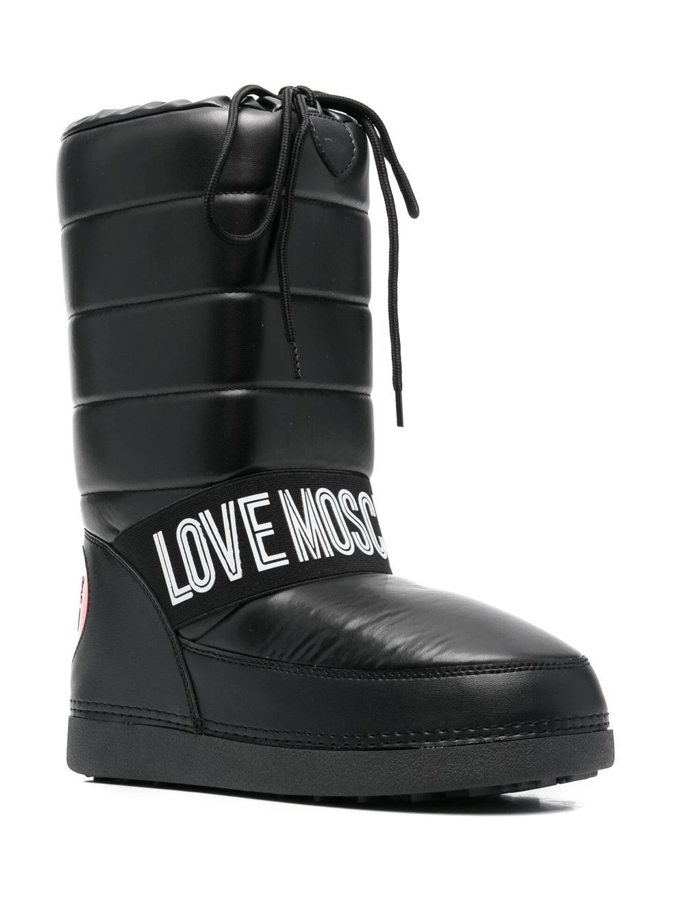 Noir, design matelassé, bride à logo imprimé, logo embossé au dos, lien de resserrage sur le dessus, longueur midi, semelle intérieure à logo, semelle épaisse en caoutchouc. Veuillez noter qu’un système de double taille s’applique à ces chaussures. La gamme des doubles tailles est la suivante : 35-36, 37-38, 39-40, 41-42..