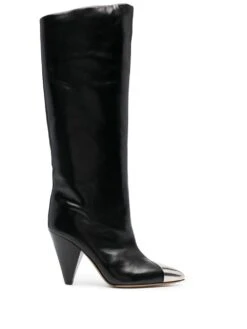 Noir de jais, effet métallisé, bout pointu, petit talon, à enfiler.