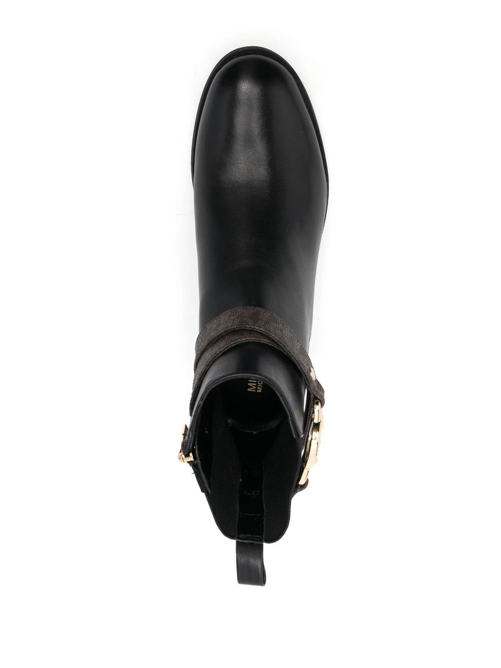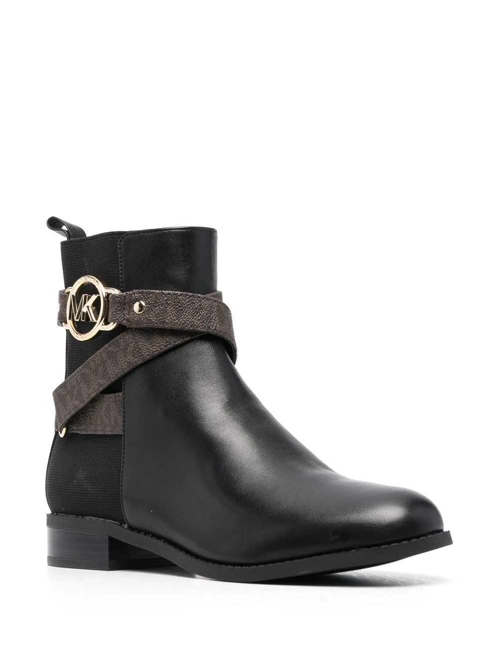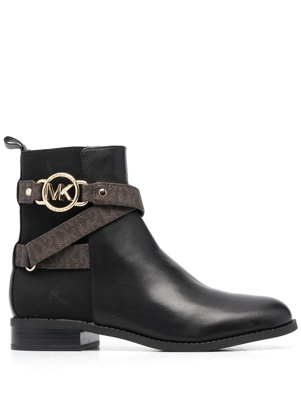 Noir, marron, plaque logo dorée, cuir de veau, bout rond, fermeture zippée sur le côté, finitions à logo, languette d’enfilage au talon, semelle en caoutchouc, petit talon épais.