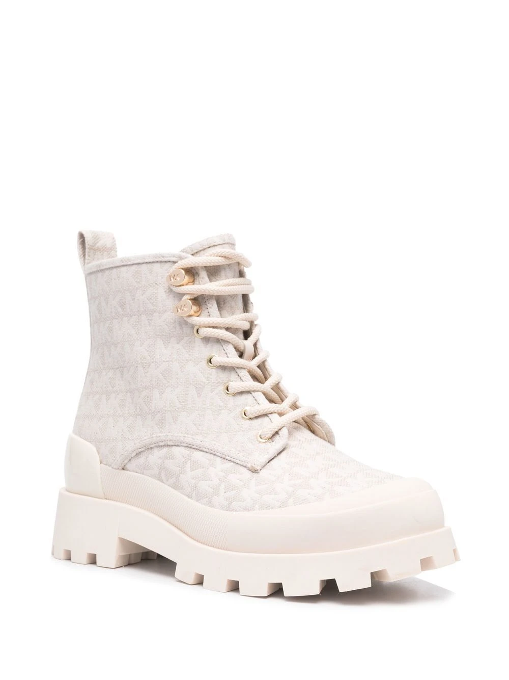 Cuir, motif monogrammé, fermeture à lacer sur le devant, bout rond, semelle crantée en caoutchouc.