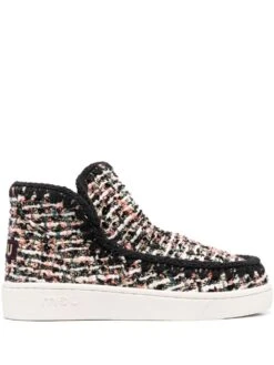 Multicolore, cuir, tweed, patch logo sur l’arrière, design à enfiler, bout rond, semelle plate en caoutchouc.