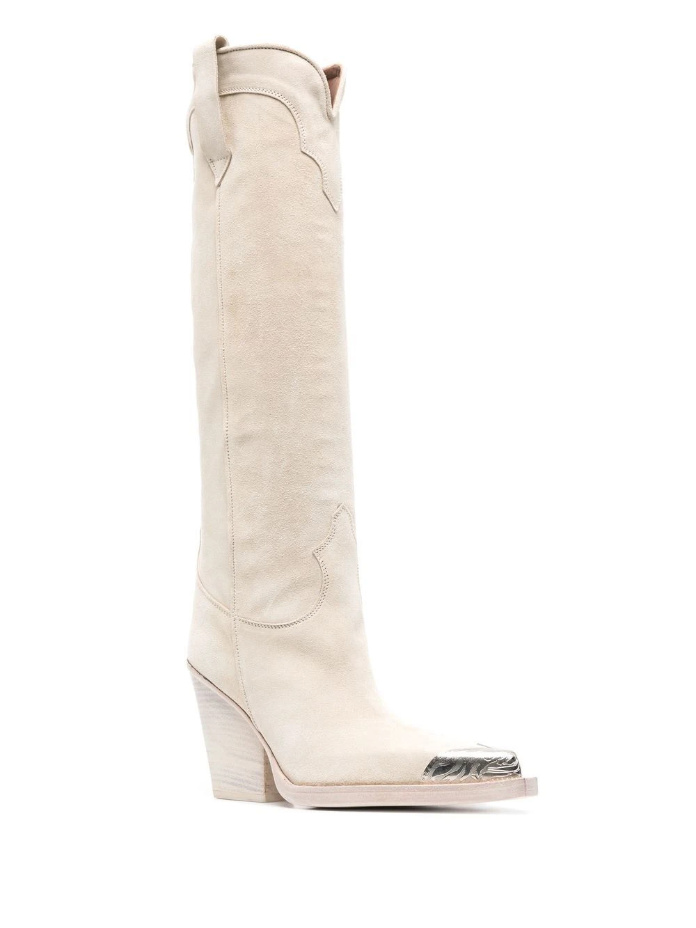 Bottes à bout pointu 100 mm paris texas avec blanc cassé, cuir de veau, bout pointu, ouverture à double languette, talon mi-haut et modèle d’inspiration Western.