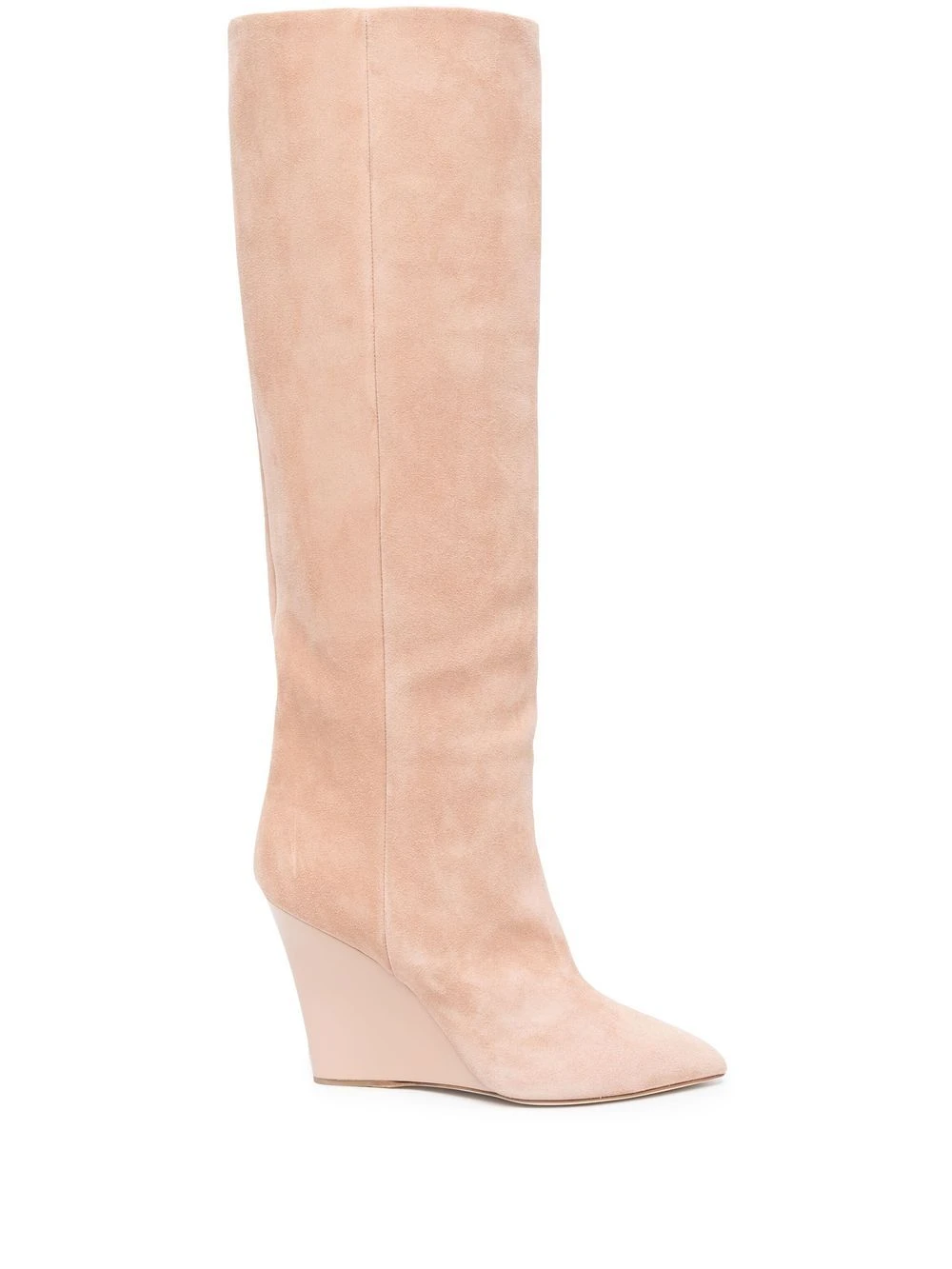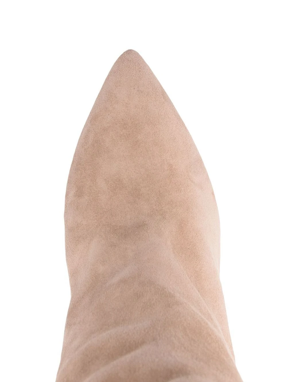 Rose, veau velours, cuir de veau, bout pointu, hauteur genou, à enfiler.