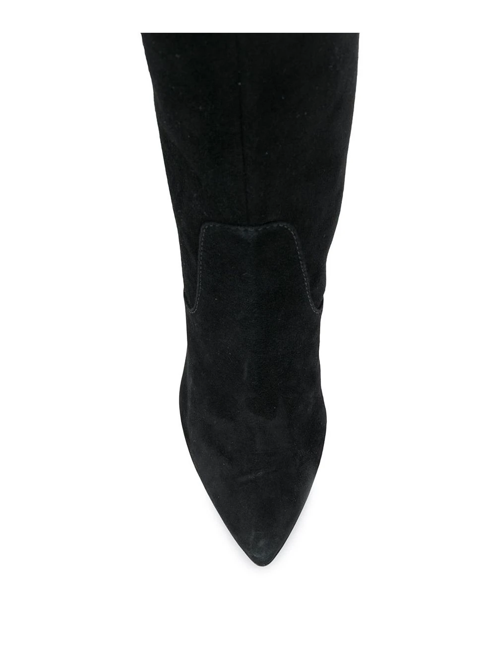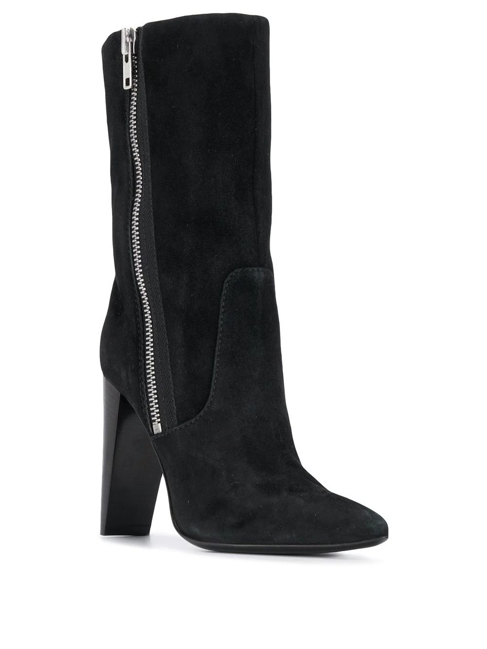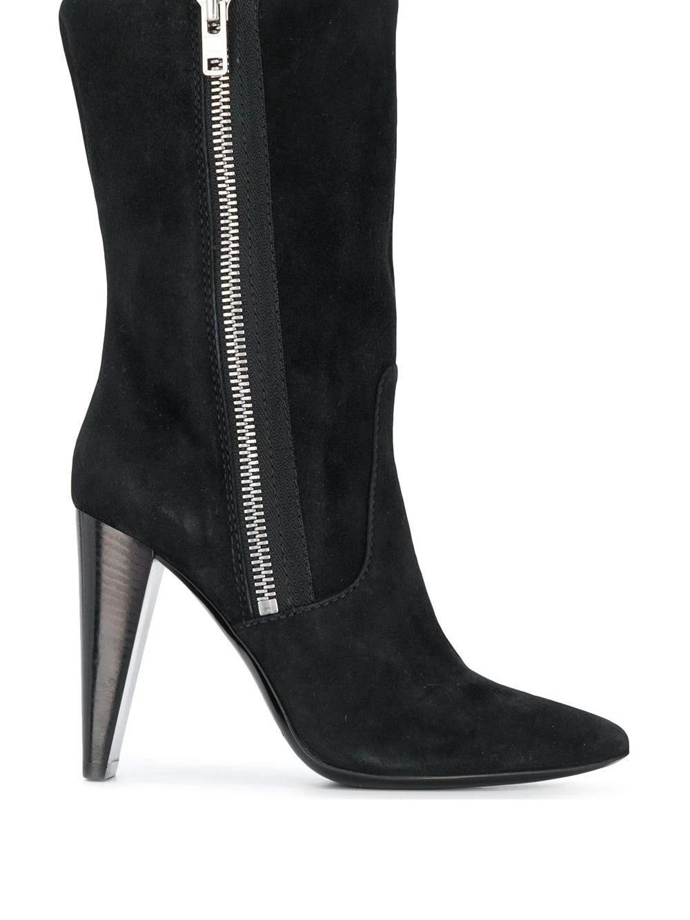 Bottes à bout pointu en daim PHILOSOPHY DI LORENZO SERAFINI KIDS avec fermeture latérale zippée et talon haut épais. Couleur : noir.