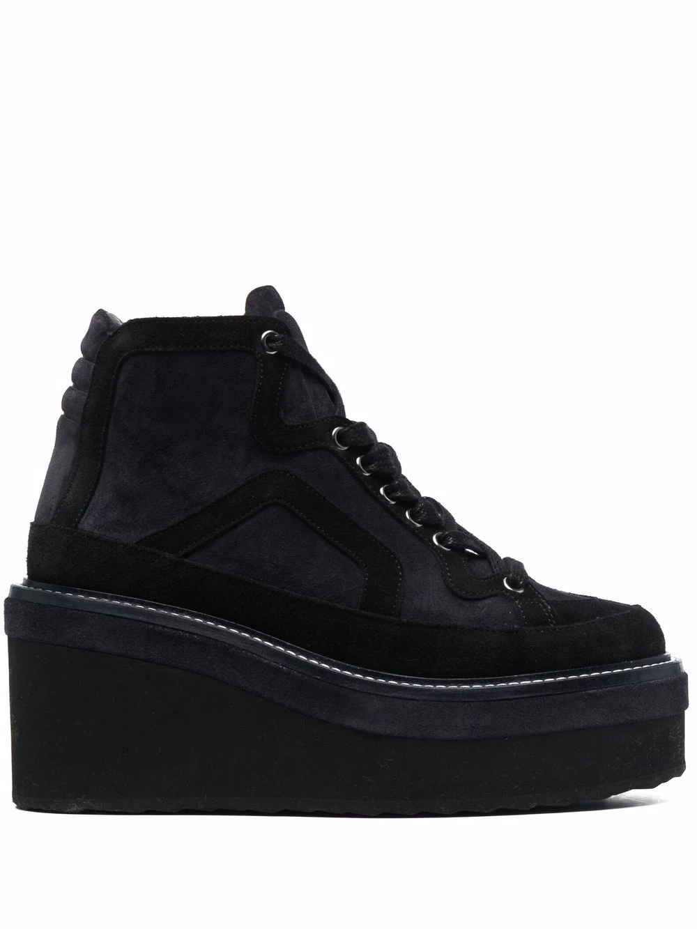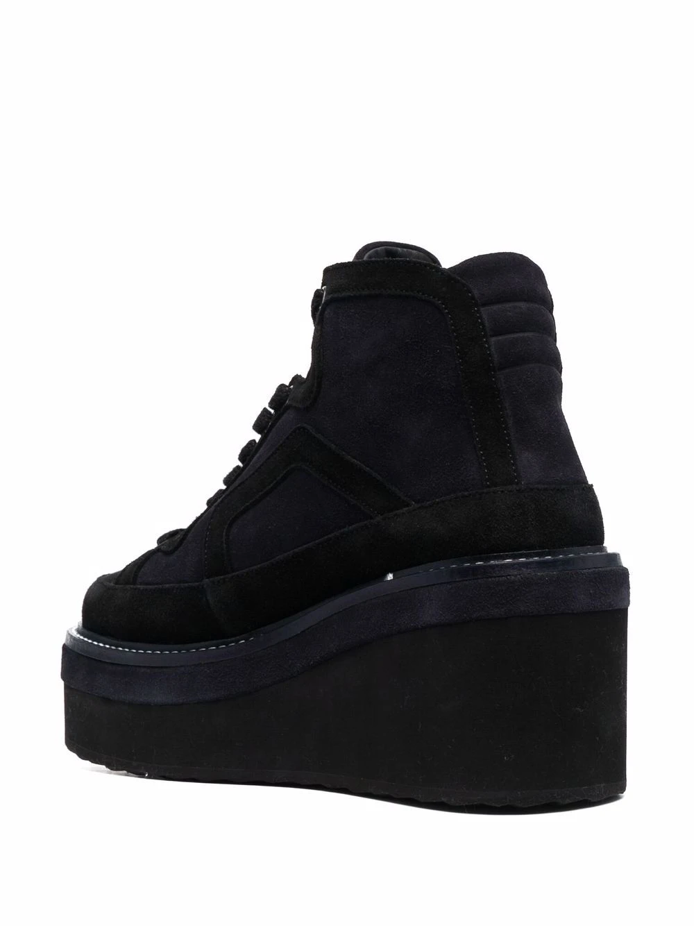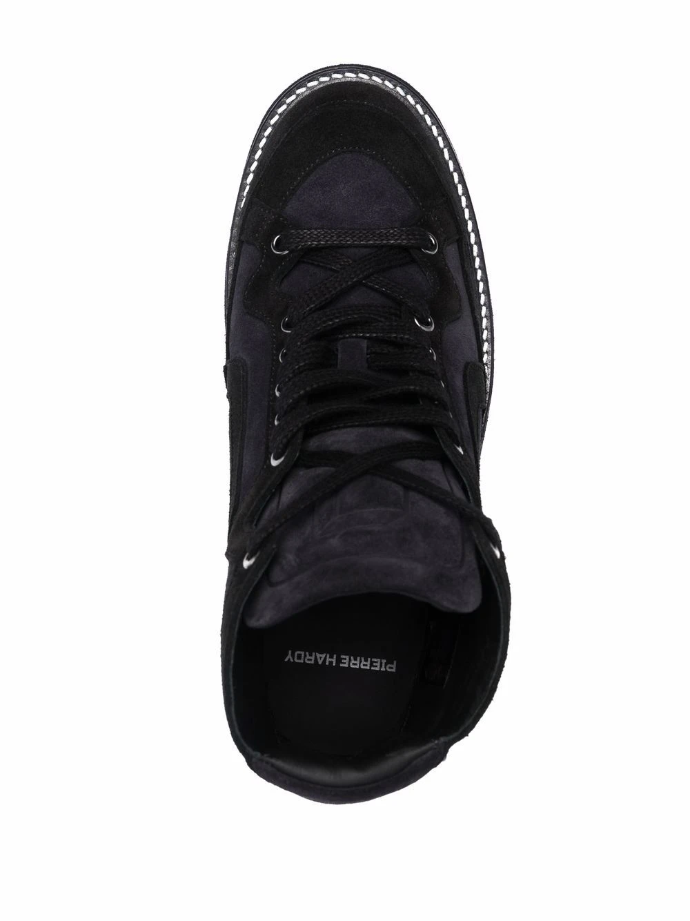 Fermeture à lacer sur le devant, détails d’œillets, bout rond, semelle épaisse en caoutchouc. Matière : cuir.