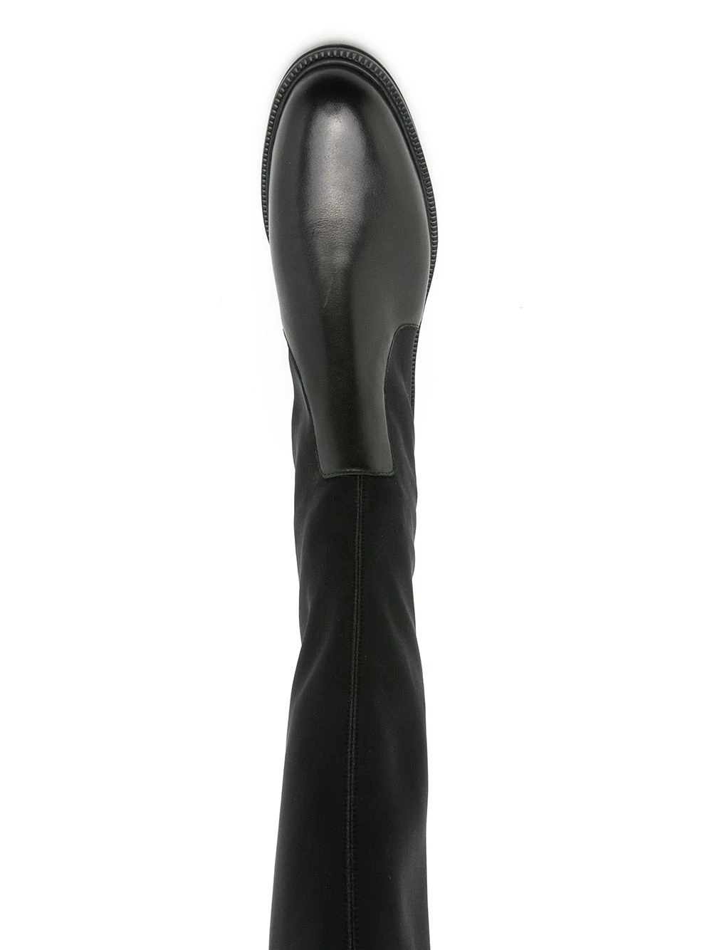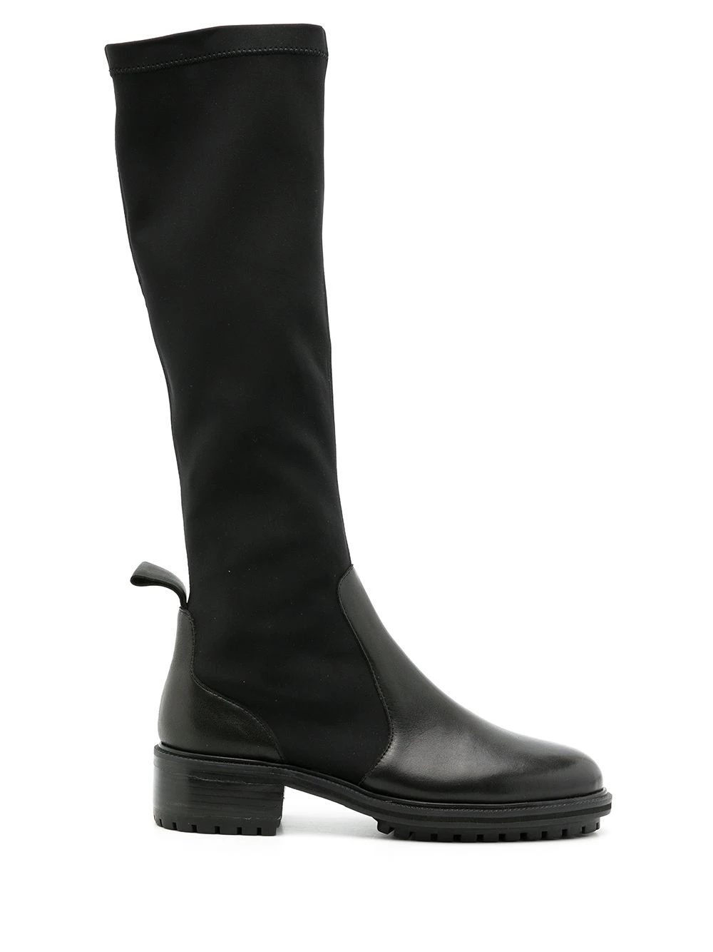 Petit talon bottier, bout rond, design à enfiler. Couleur : noir. Matière : cuir.