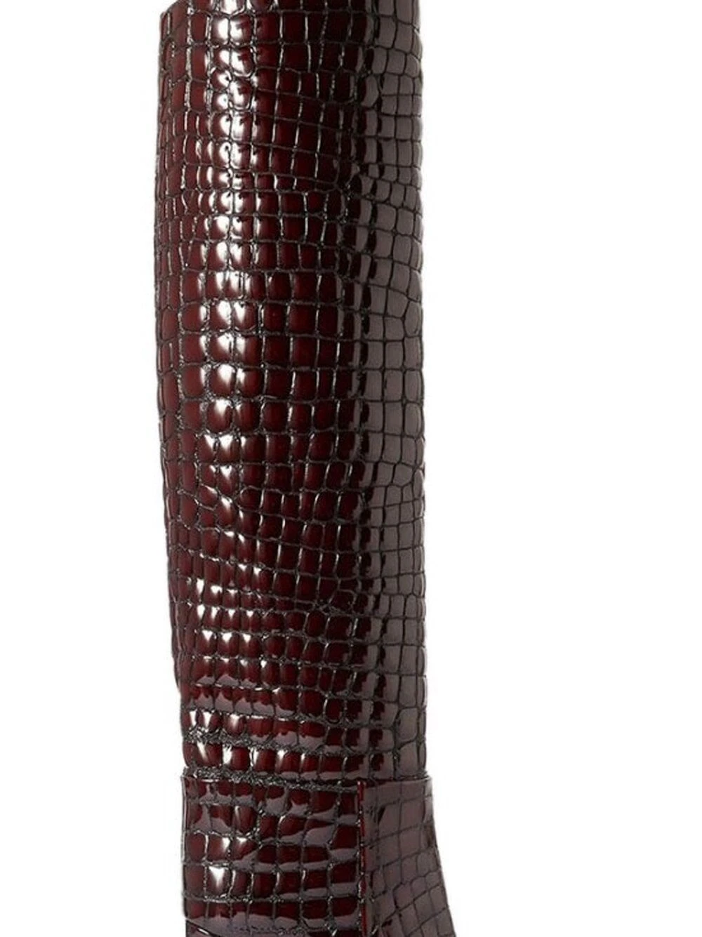 Café, cuir, effet peau de crocodile, bout pointu, talon aiguille haut.