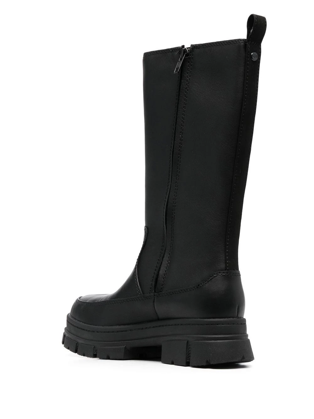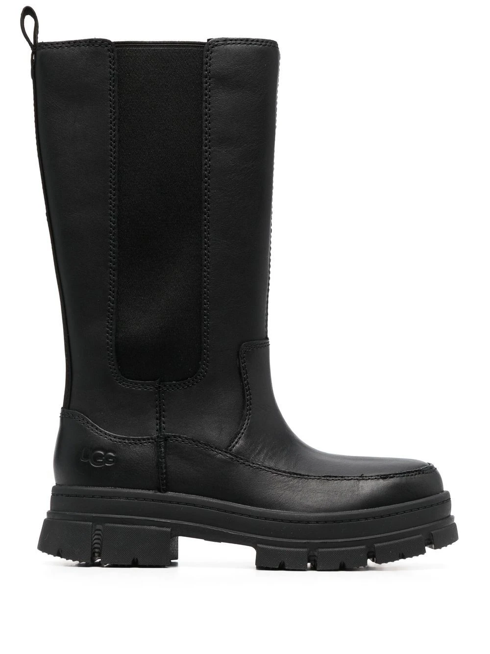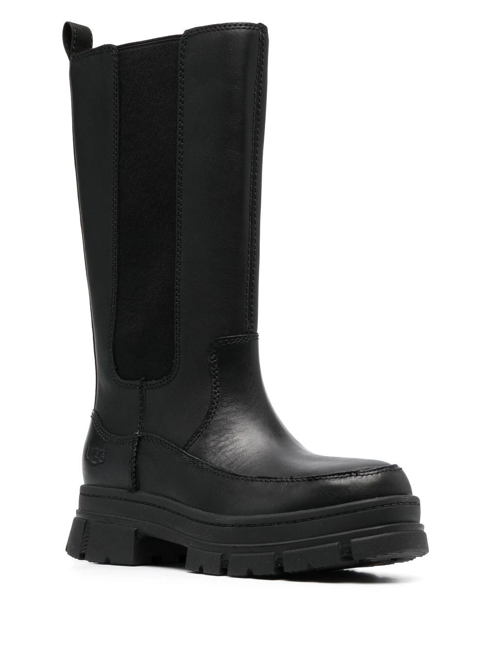 Noir, cuir de veau, logo embossé sur le côté, bout rond, empiècements élastiqués sur les côtés, fermeture zippée sur les côtés, petit talon, semelle crantée en caoutchouc.