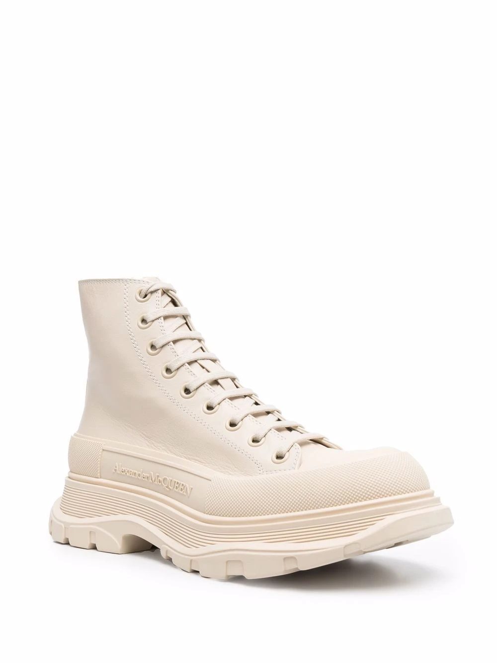 Bout rond, fermeture à lacer sur le devant, logo sur la semelle, semelle épaisse en caoutchouc, hauteur cheville.