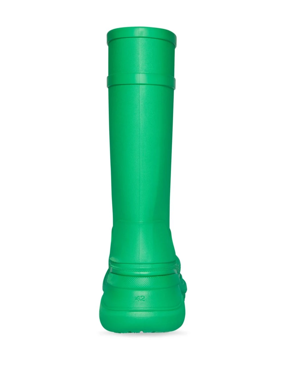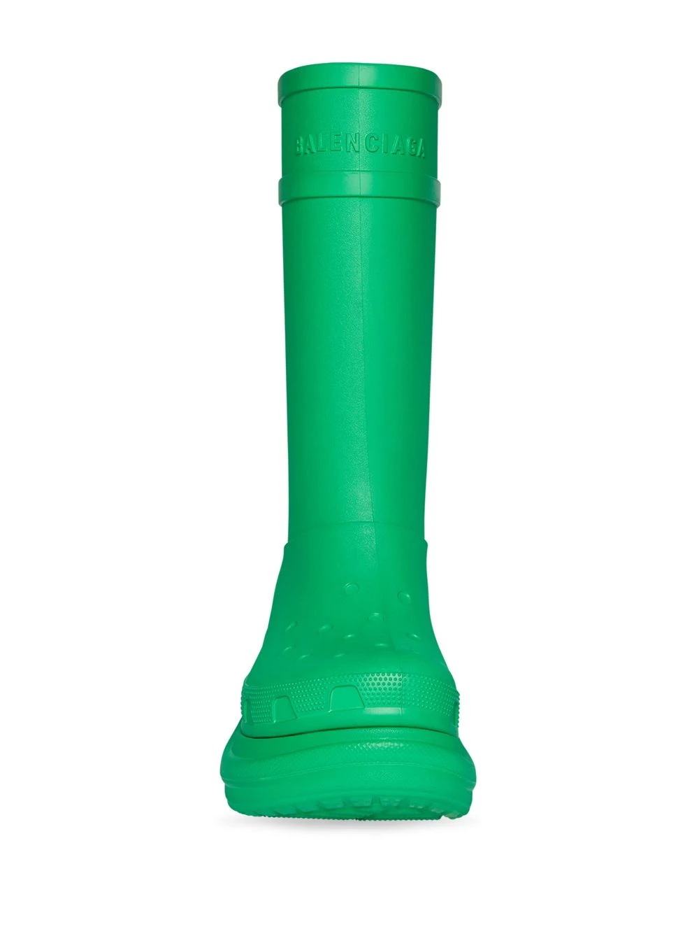 Vert gazon, logo embossé sur le devant, détails de perforations, bout rond, à enfiler, semelle intérieure griffée, semelle épaisse en caoutchouc.