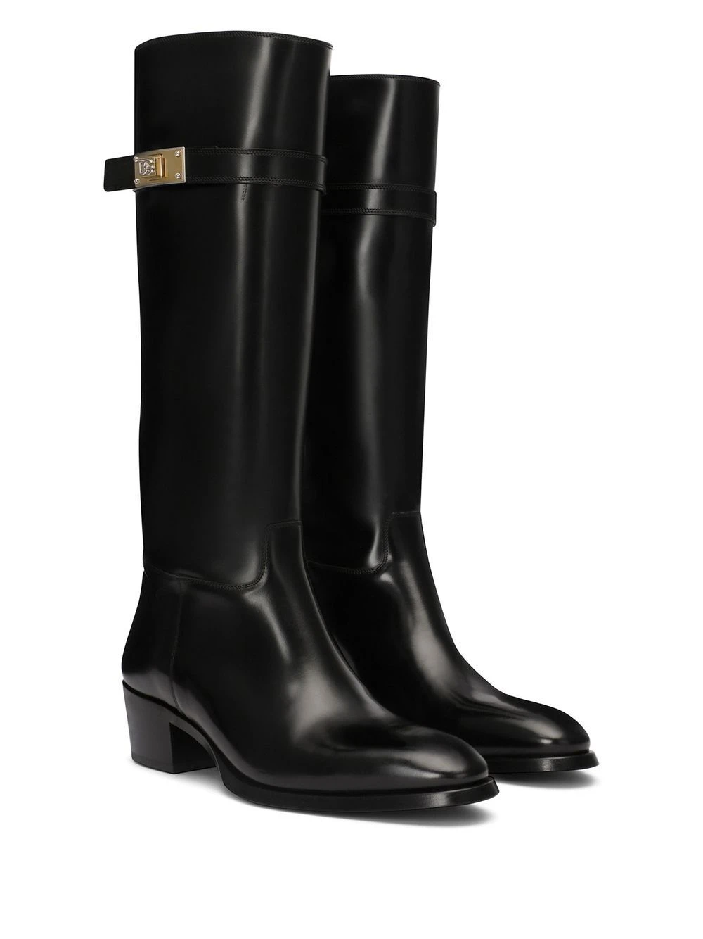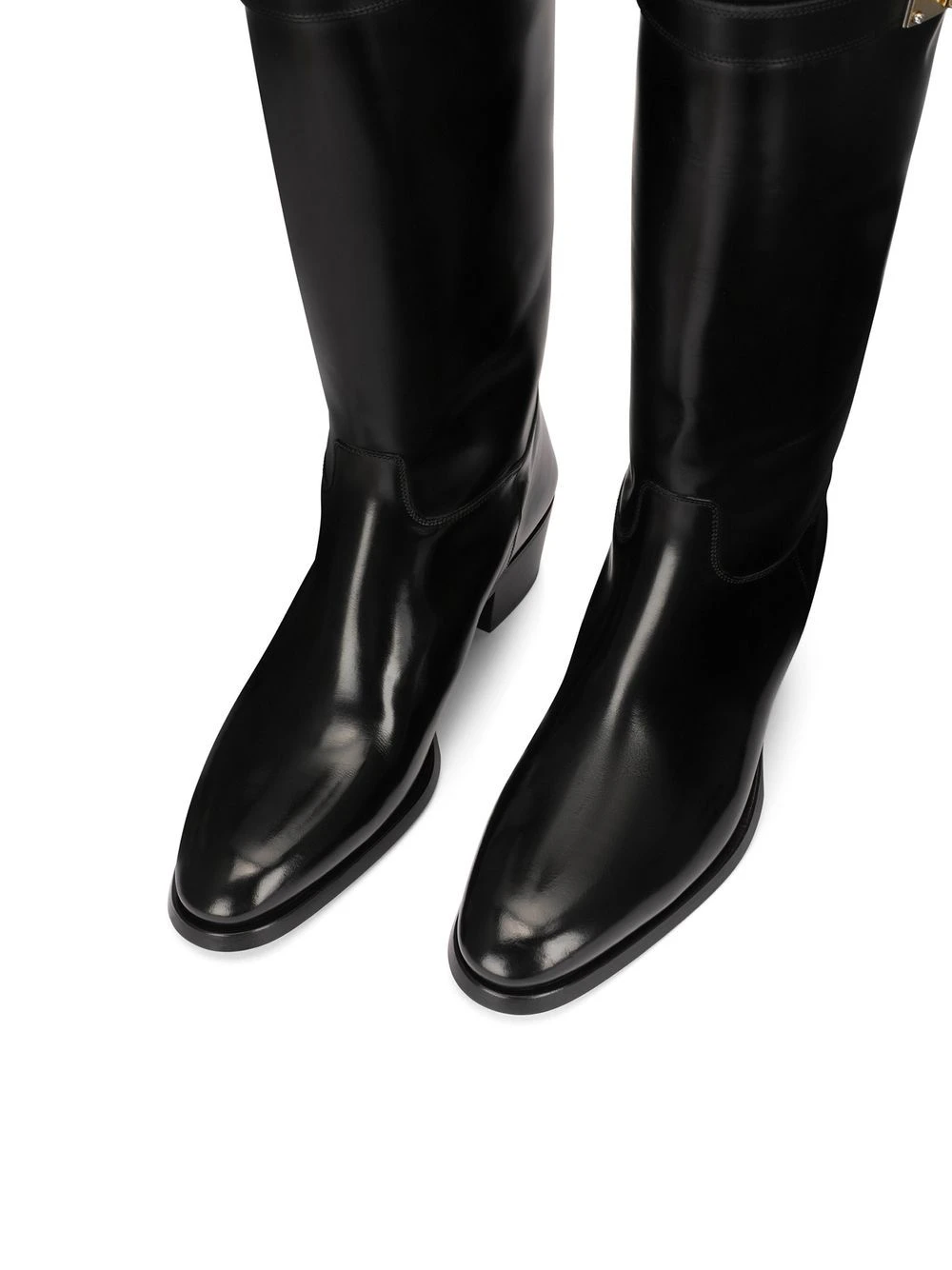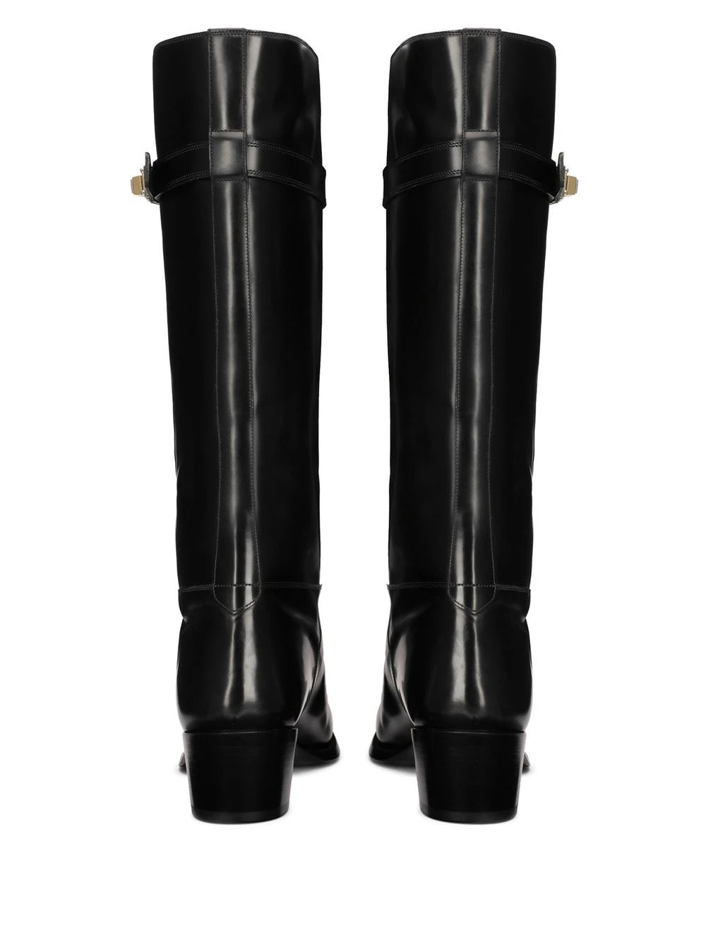 Fermeture à boucle logo, longueur midi, bout pointu, petit talon épais.