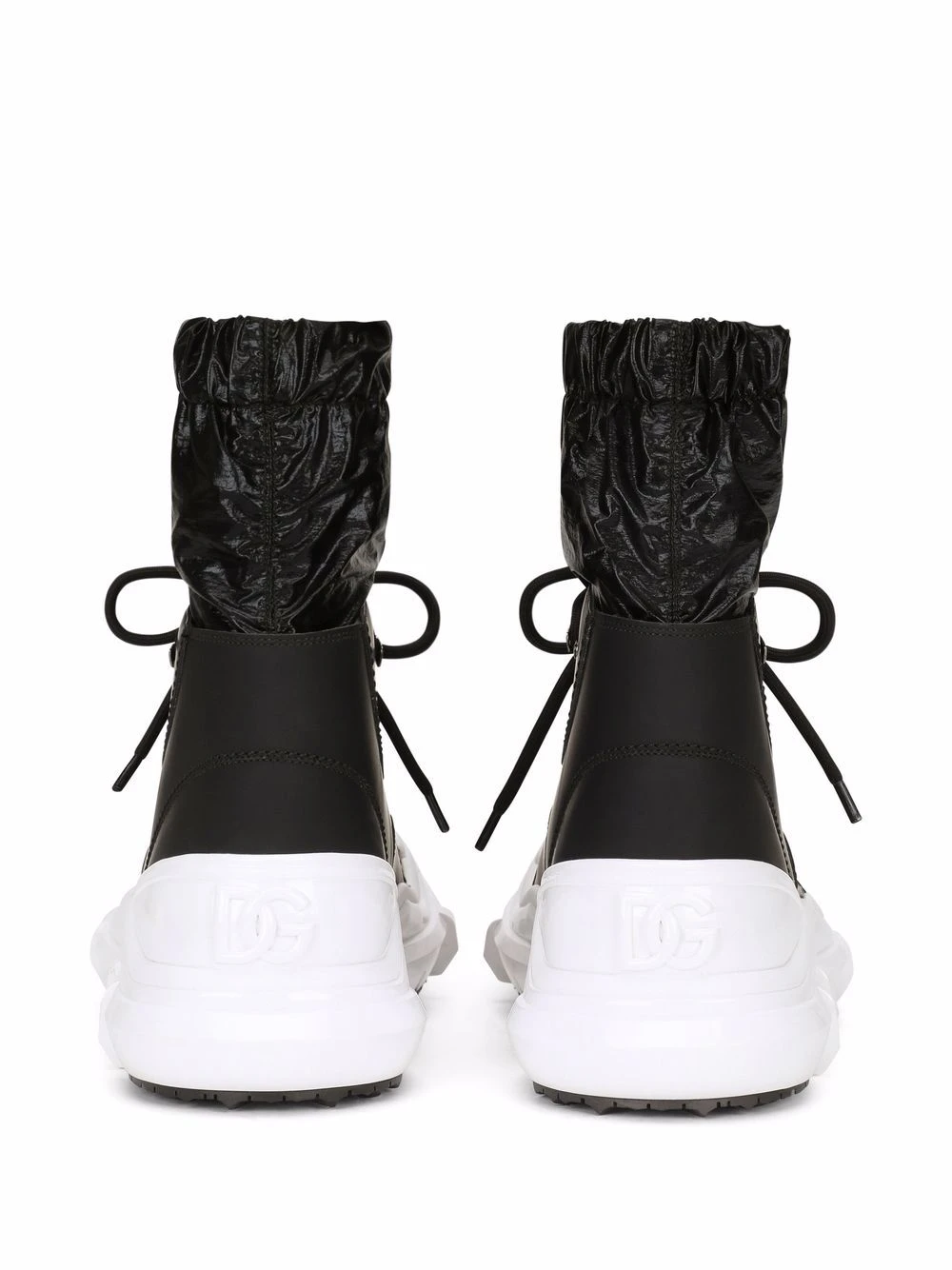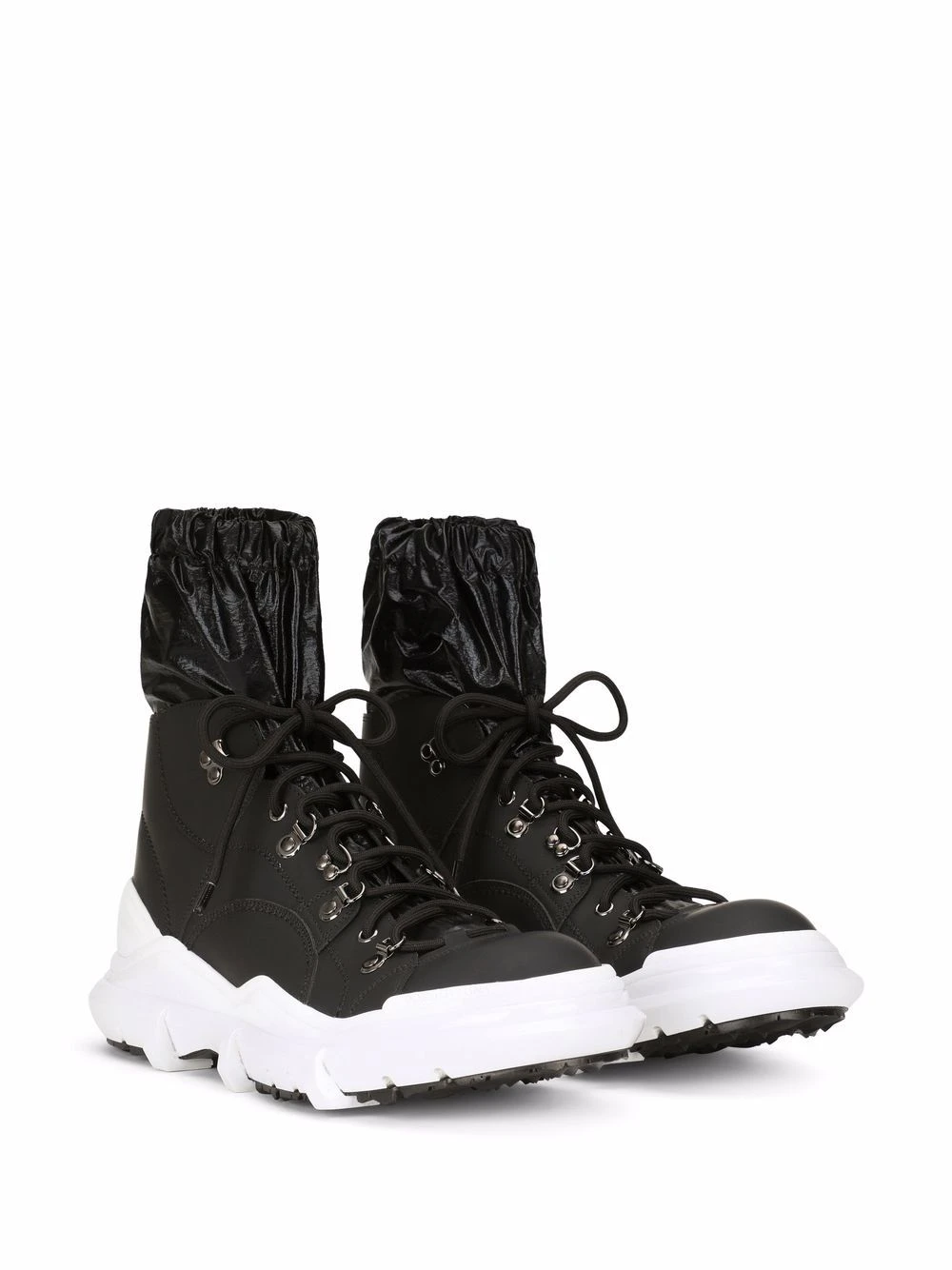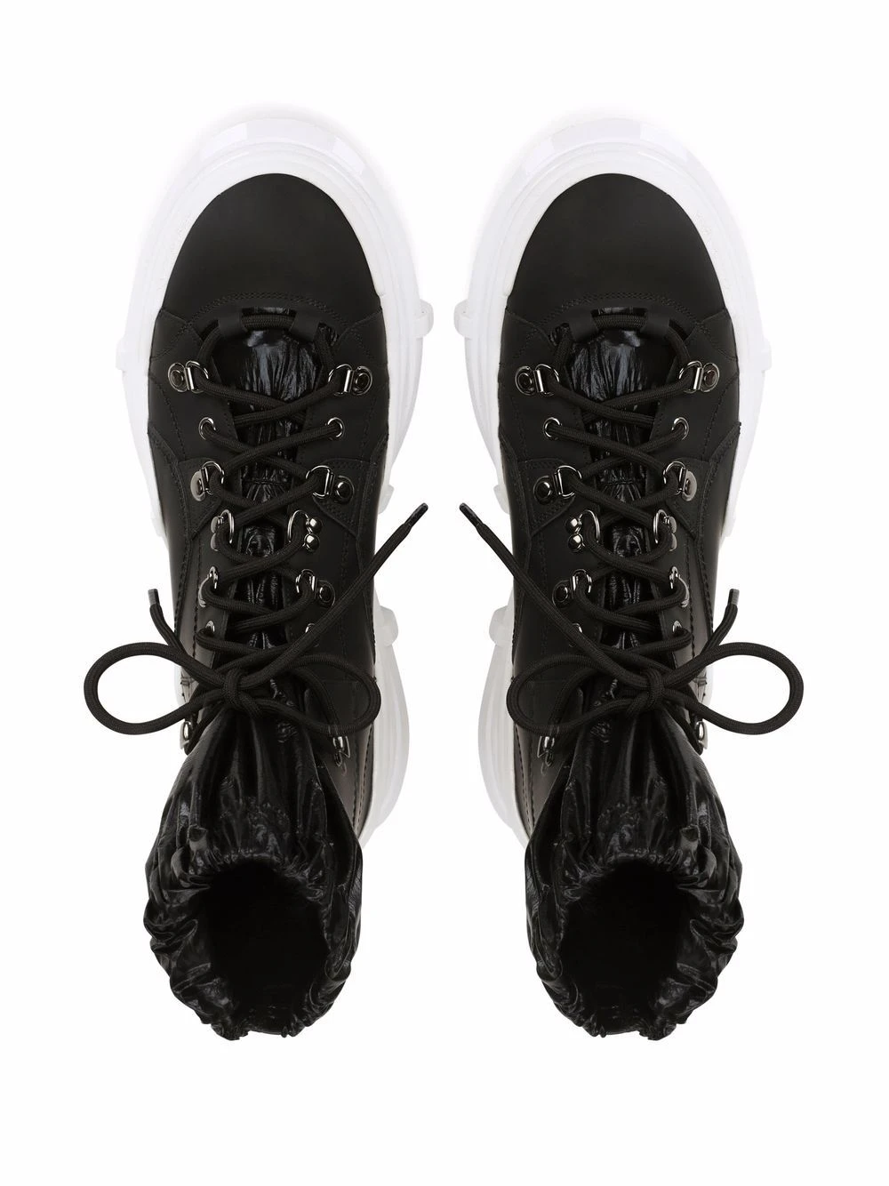 Chevilles élastiques, fermeture à lacer sur le devant, bout rond, semelle épaisse en caoutchouc.
