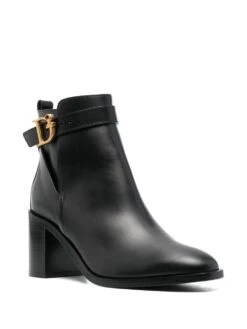 Bout carré, motif Icon signature, imprimé graffiti, hauteur genou, petit talon épais, semelle crantée en caoutchouc, design à enfiler. Couleur : noir.