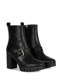 Doublure en mouton retourné, logo brodé, fermeture à lacer sur le devant, fermeture zippée sur le côté, semelle plate en caoutchouc. Couleur : marron. Matière : cuir.