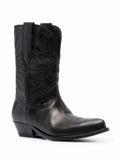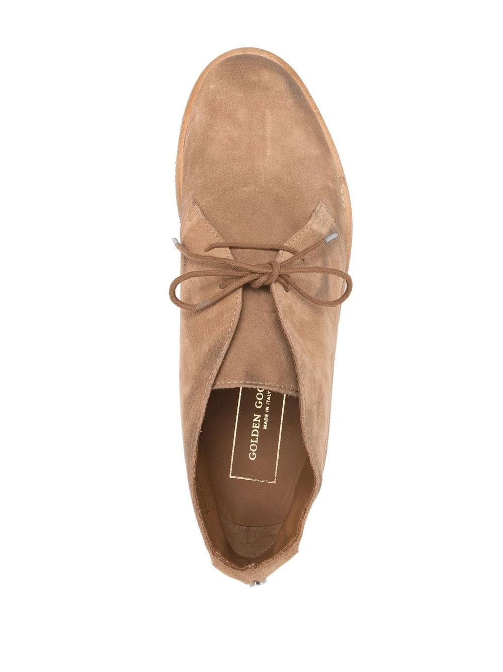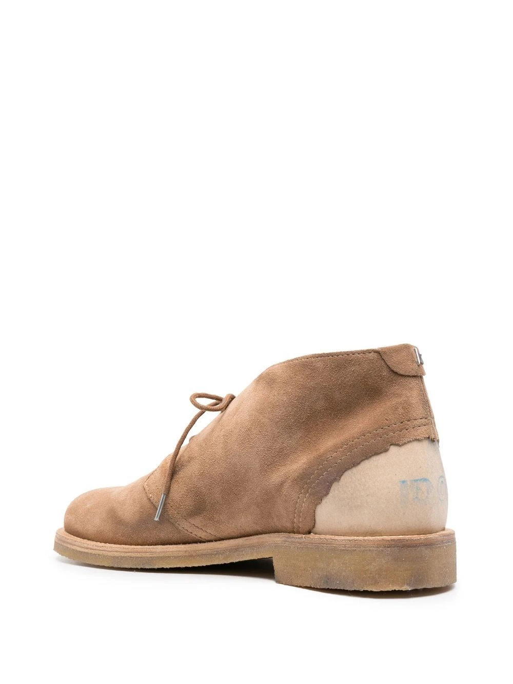 Doublure en cuir, bout en amande, fermeture à lacer sur le devant, hauteur cheville, petit talon, semelle en caoutchouc.