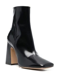 Bout carré, à enfiler, hauteur genou, semelle plate. Couleur : noir. Matière : cuir de veau.