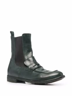 Empiècements élastiqués sur les côtés, fermeture zippée à l’arrière, bout carré, hauteur cheville, semelle intérieure à logo, semelle plate en caoutchouc. Couleur : noir. Matière : cuir.