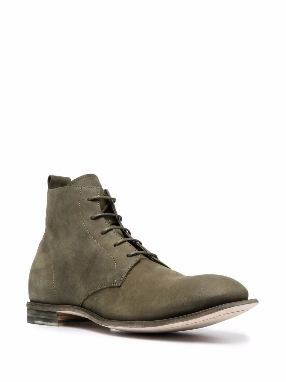 Daim, fermeture à lacer sur le devant, bout rond, languette d’enfilage au talon, semelle intérieure à logo, semelle plate en cuir. Couleur : vert. Matière : cuir.