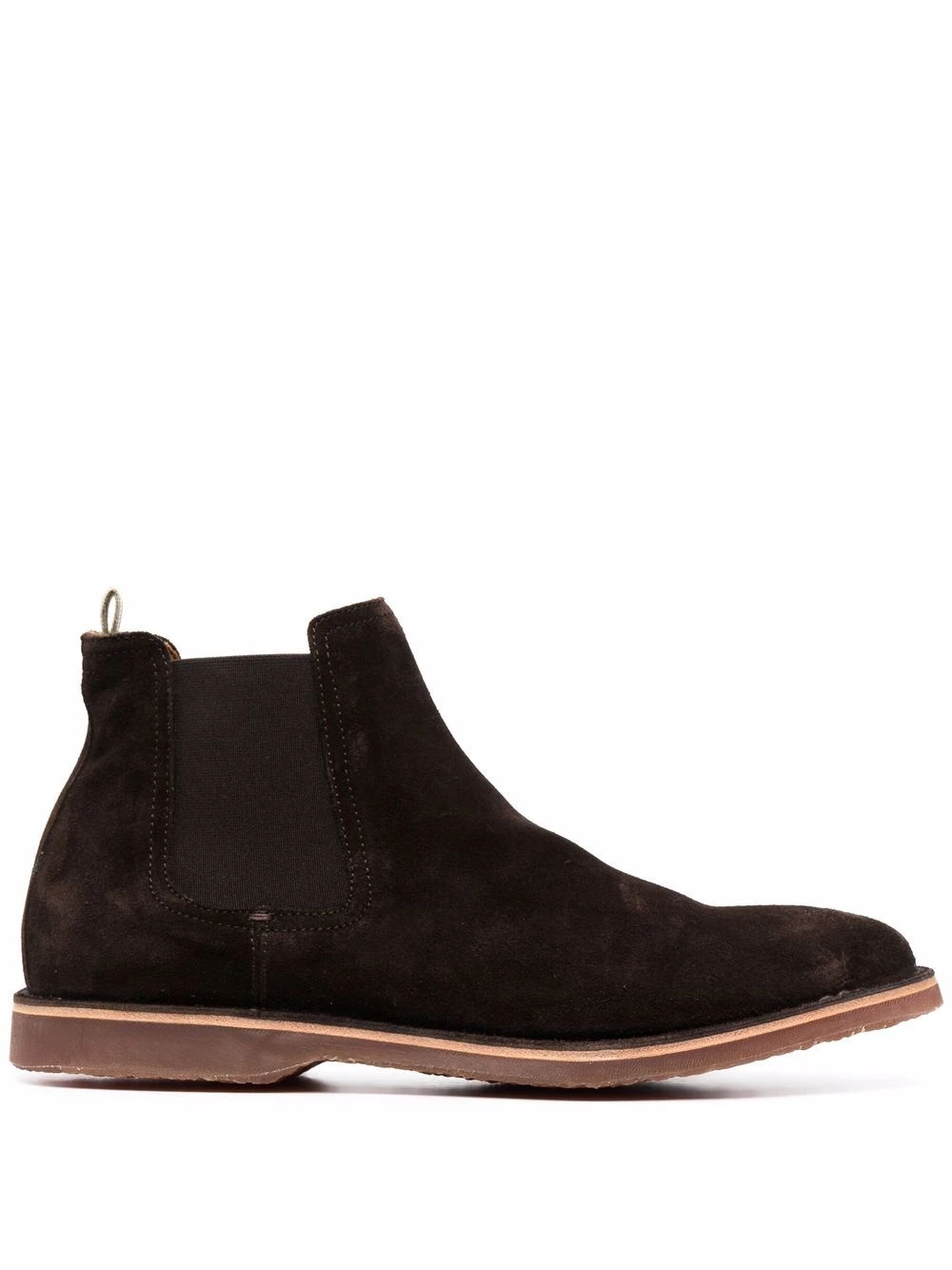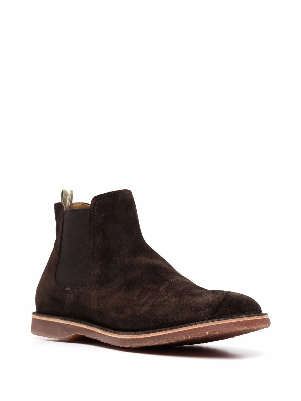 Daim, empiècements élastiqués sur les côtés, bout en amande, languette d’enfilage au talon, semelle intérieure à logo, semelle plate en caoutchouc.