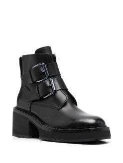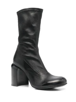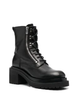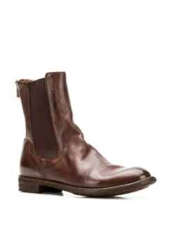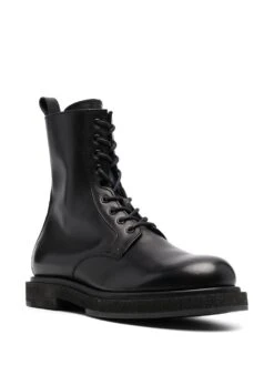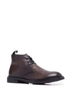 Vert, cuir, cuir de veau, bout rond, fermeture à lacer sur le devant, semelle en caoutchouc, petit talon.