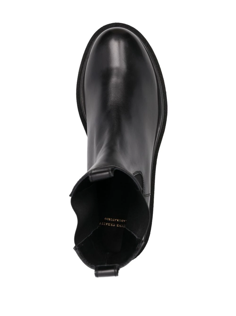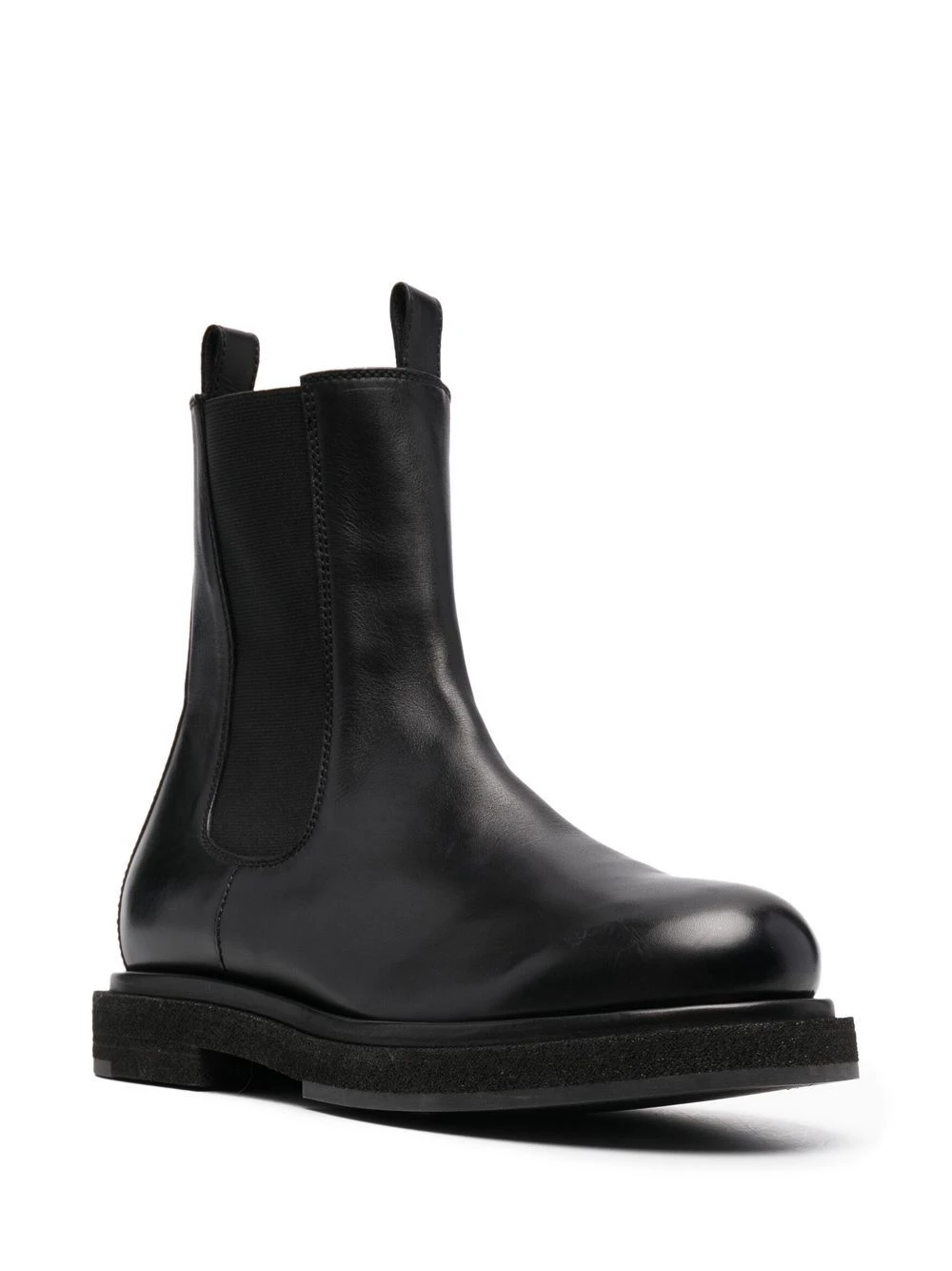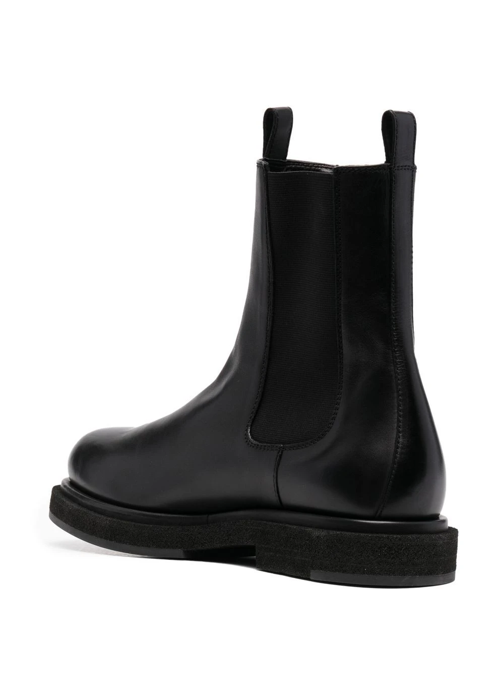 Noir, cuir de veau, cuir, empiècements Ă©lastiquĂ©s sur les cĂ´tĂ©s, languette d’enfilage au talon, bout en amande, design Ă enfiler, semelle en caoutchouc, petit talon.
