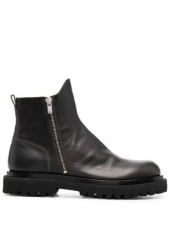 Gris anthracite, cuir de veau, cuir, doublure en cuir, semelle intérieure à logo, bout en amande, fermeture zippée sur les côtés, semelle en caoutchouc, petit talon.