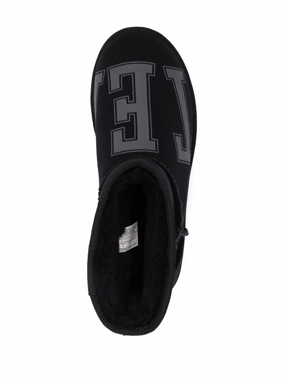Logo imprimé sur le devant, patch logo sur l’arrière, coutures apparentes, semelle intérieure à coussinet plantaire, languette d’enfilage au talon, hauteur cheville, design à enfiler. Couleur : noir.
