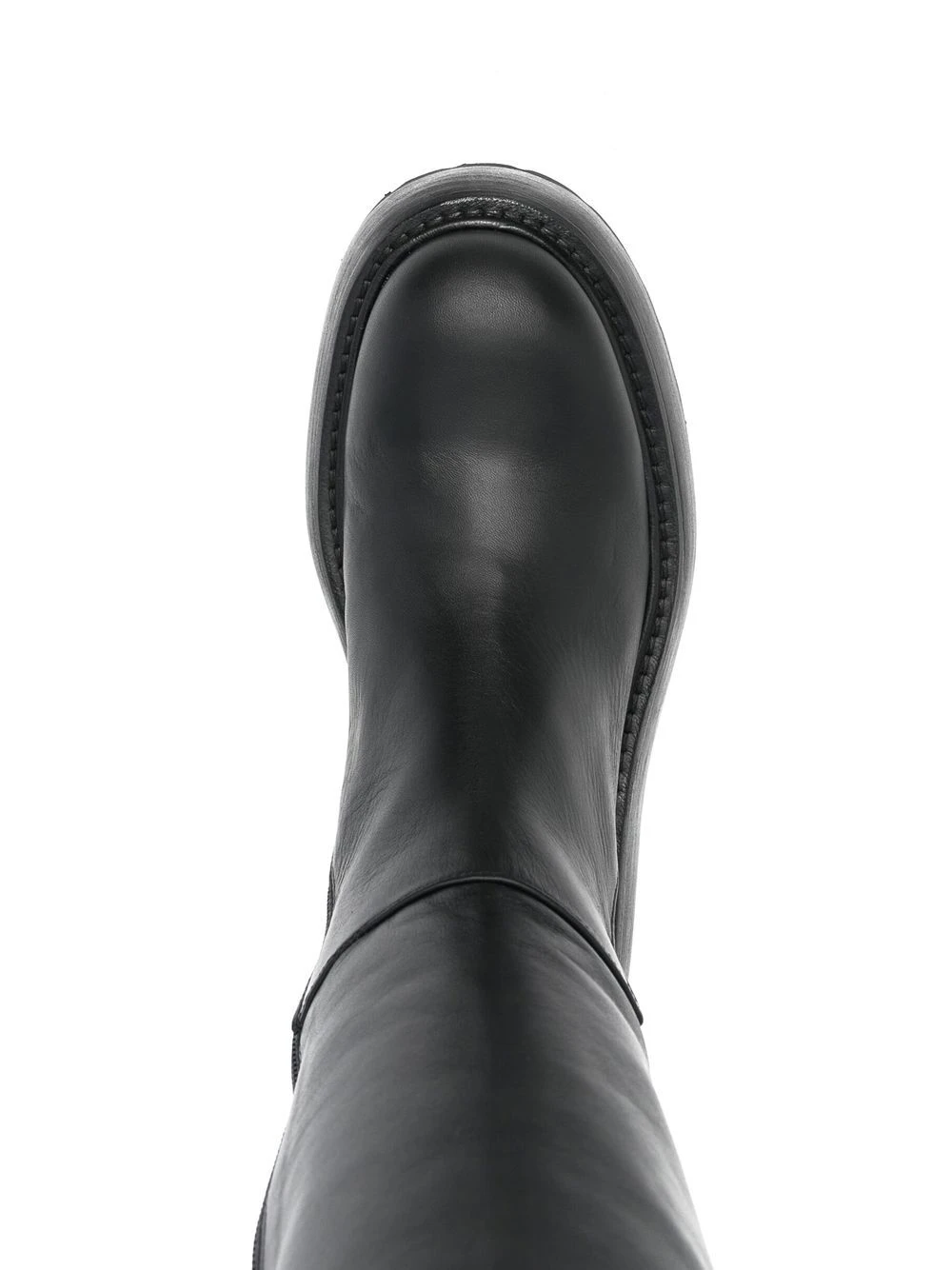 Noir de jais, cuir de veau, bout rond, petit talon, languette d’enfilage au talon, à enfiler.