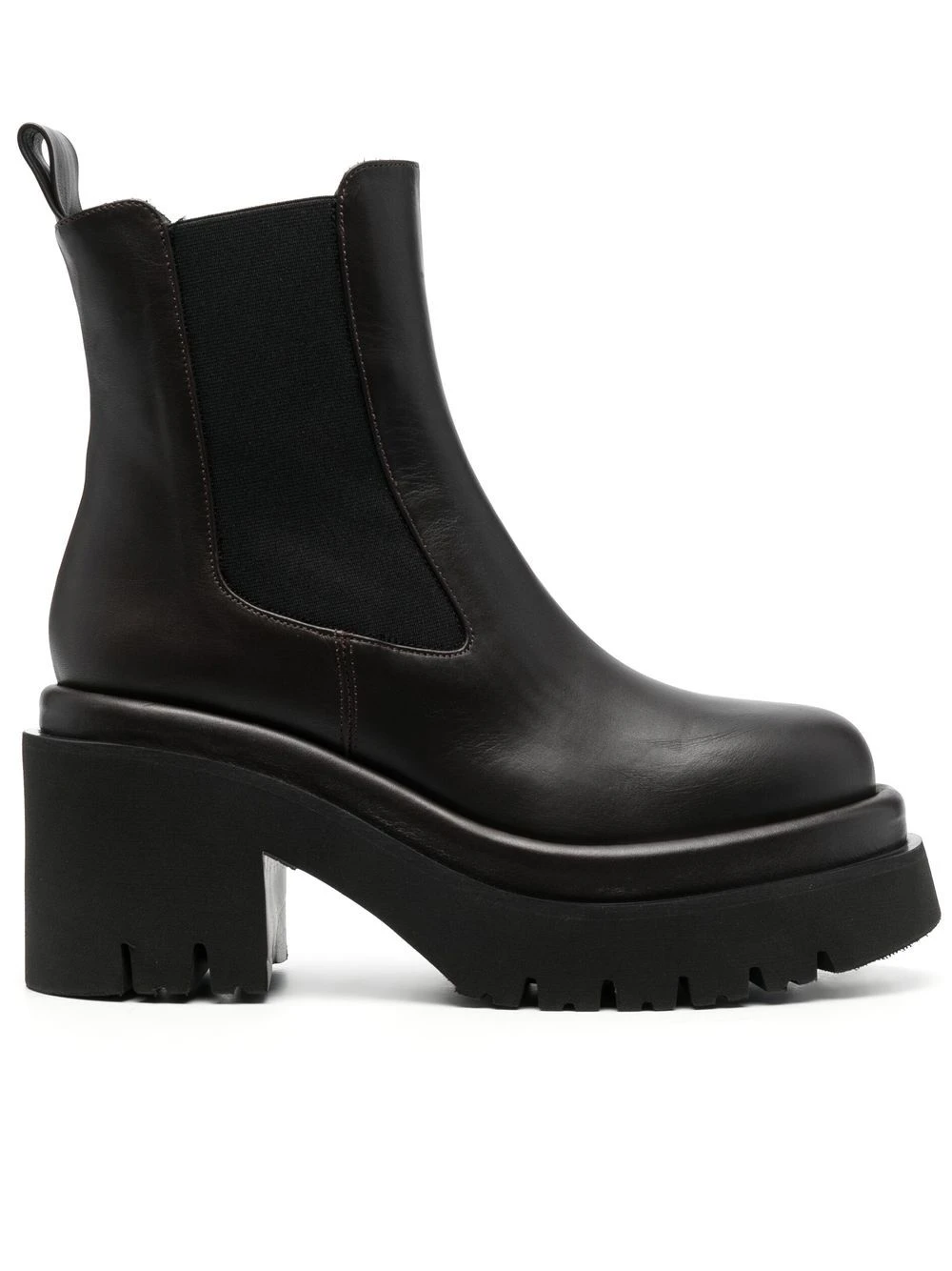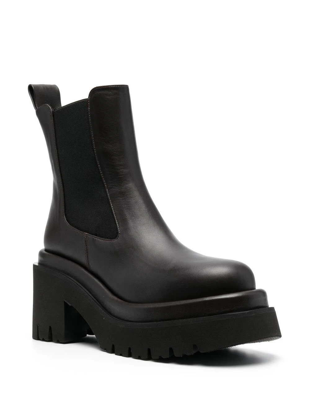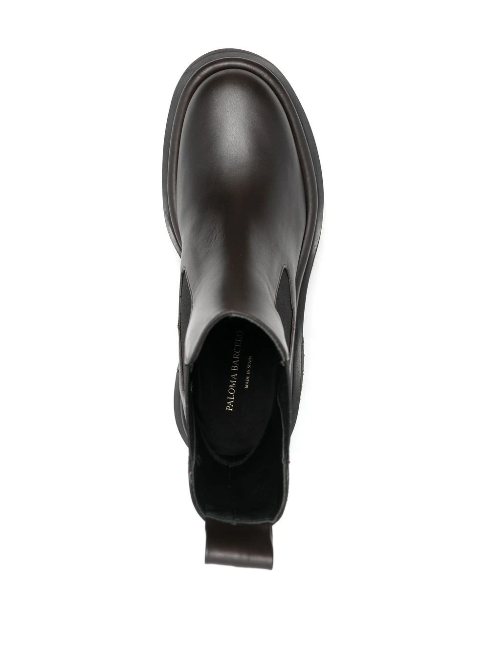 Noir, cuir de veau, semelle épaisse, bout rond, empiècements élastiqués sur les côtés, languette d’enfilage au talon, bout rond, à enfiler.